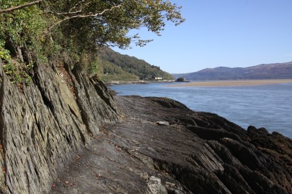 If you are looking for a short walk with some lovely views over the river estuary and the hills beyond, this is a nice one.  If you want to go all the way to Picnic Island, a walk of just 30 minutes or so, you will need to be prepared to pick your way along some jagged rocks, but if you only want to go as far as the beach beneath the footbridge over the railway line, it’s a simple walk along well worn paths.  You can also turn it into a much longer 6 mile walk by crossing the footbridge and going up the hill and circling back into Aberdovey. I’ve added a PDF at the end of this post.  Patches can be a bit muddy after rainfall and on the rock this can be slippery, so suitable footwear is recommended.  Before you set out, check the tides.  You will need to avoid high tide, because part of the walk is cut off by water.  If you do find yourself returning along the path to meet with an unpassable section you will need to cross the bridge over the railway and return along the road, but this is a busy road with no footpath so is much best avoided.