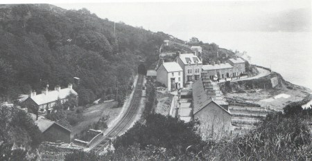Penhelig Lodge is to the left of the railway track, in about 1865, now separated from the sea by the railway and the newly built Penhelig Terrace, which is end on in this photograph. Source: Hugh M. Lewis, Pages of Time.