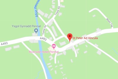 Location of St Peter ad Vincula in Pennal. Courtesy Google Maps.