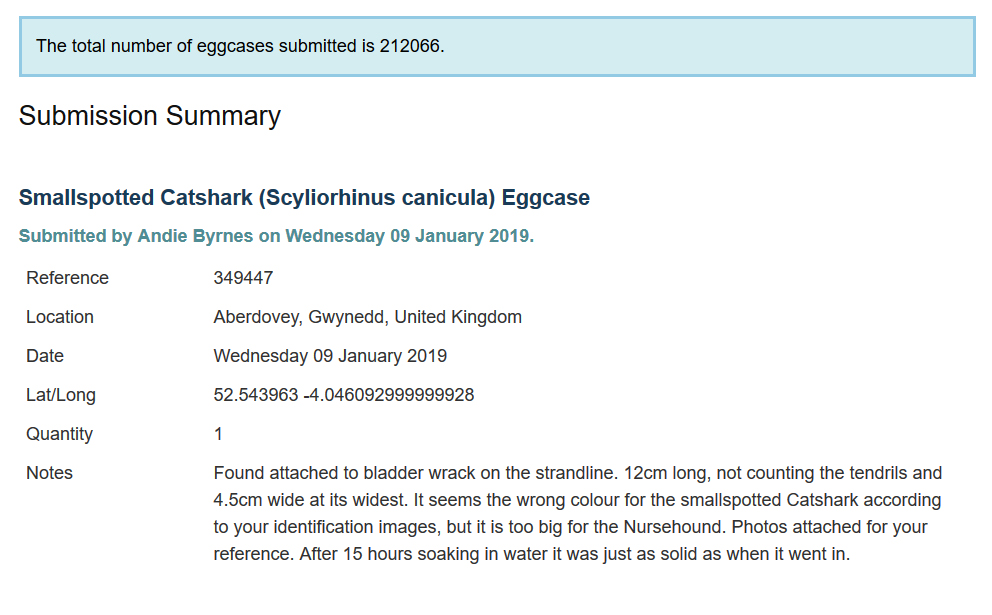 Website response from my eggcase identification submission ← Previous Next → Website response from my eggcase identification submission