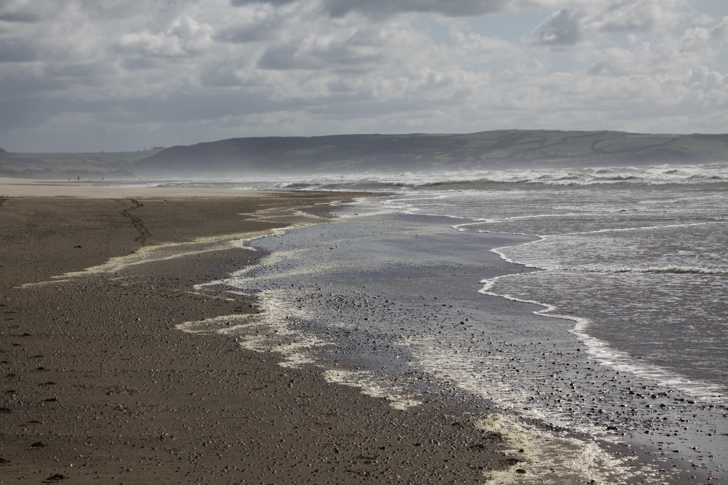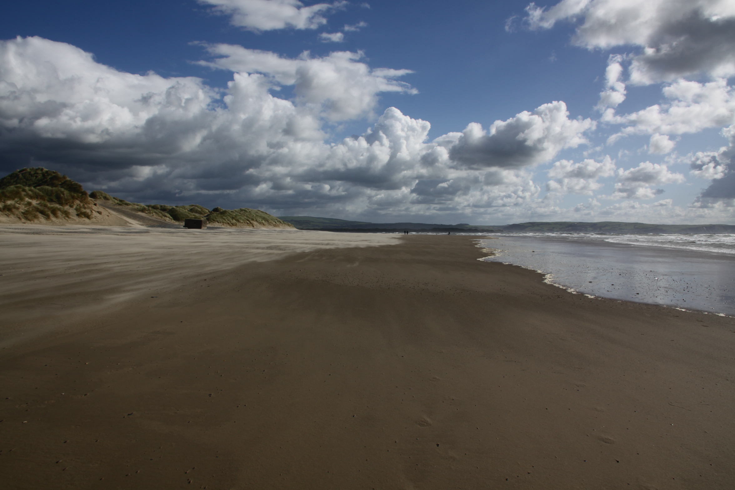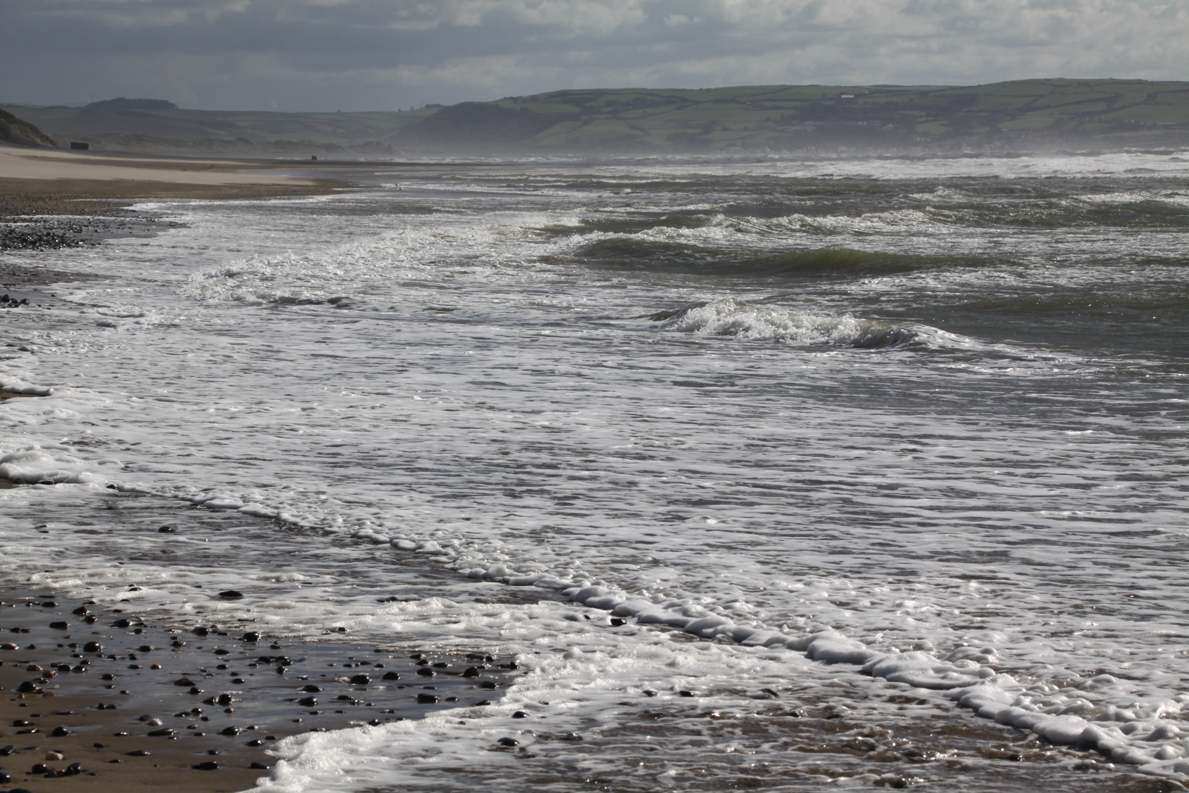 A nice walk over the hill and down the other side on the 25th September, through the Gywddgwion farm on the footpath, dropping down into a (mostly) dry stream bed that doubles up as a footpath in the summer, to collect some blackberries, emerging at Dyffryn Glyn Cul farm.  We strolled down the single track lane to the coast road, crossed over and headed towards the dunes, and from there down on to the beach.  This is my favourite bunch of beach photos to date.  There were a couple of nice days after this, but it was the last of my walking for the time being, as I had to get down to some work.  Adding the photos to this post rather belatedly on October 4th, the difference between those divine last days of September and the onset of October wind and rain is truly amazing.