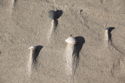 There are lots of pebbles, rounded by being rolled in the sea and over sand and other pebbles, a variety of shapes, sizes, colours and textures.  There are almost no shells, but there are occasionally limpets, which are only rarely found at Aberdovey, probably due to the lack of rocks for them to cling to.   Perhaps because of the breakwaters there is nothing in the way of a strandline capturing oddities from the sea, but this is good news for sun-bathers.  The Tywyn beach very definitely has its own personality.