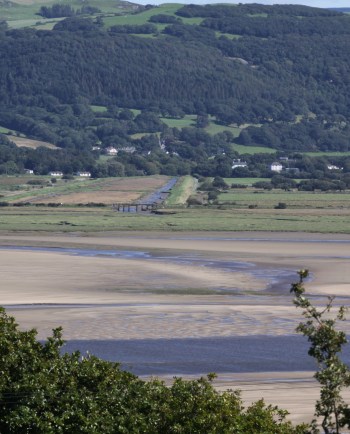 The rest of the walk is very rewarding once the road is left behind, walking first along a bubbling stream for a short way, and then up through a wood behind the Outward Bound centre before emerging into the sun on the side of the hill overlooking the estuary.  The hills above the estuary are far more lush than the exposed slopes along the coast, with longer grass, and a lot more shrubs and trees, and the views over the estuary are spectacular.  Afon Leri has always been a remarkable landmark crossing Cors Fochno to the east of Ynys Las, but I hadn’t noticed a smaller, parallel canalized section of stream further upriver, Afon Clettwr, with a small bridge carrying the railway. There weren’t a lot of wild flowers to comment on, but there was a thistle absolutely swarming with bright orange Rhagonycha fulva beetles, some lovely bright heather, and bright red berries on Mountain Ash.