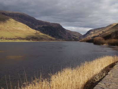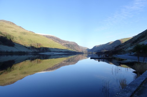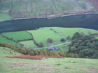Tal y Llyn is a form of ribbon lake 220 acres in surface area, with an average depth of 8ft (c2.5m) and maximum depth of 12ft (c.3.6m). The head of the lake is fed by a number of smalls steams fed by the flanking slopes. The main streams that feed the lake are Nant Yr Allt-ioen, which travels along the valley below the A487 where it runs through the Tal y Llyn pass; the Nant Cadair stream that runs out of Llyn Cau on Cadair Idris, dropping steeply to the valley floor; the stream and waterfall that flows down Cwm Amarch, above Pentre Farm on the northeast side of the lake; and Nant Cildydd, and another small stream from the east. There are two stream emerging from a freshwater springs, almost opposite each other at the far northeast and northwest of the lake.