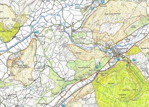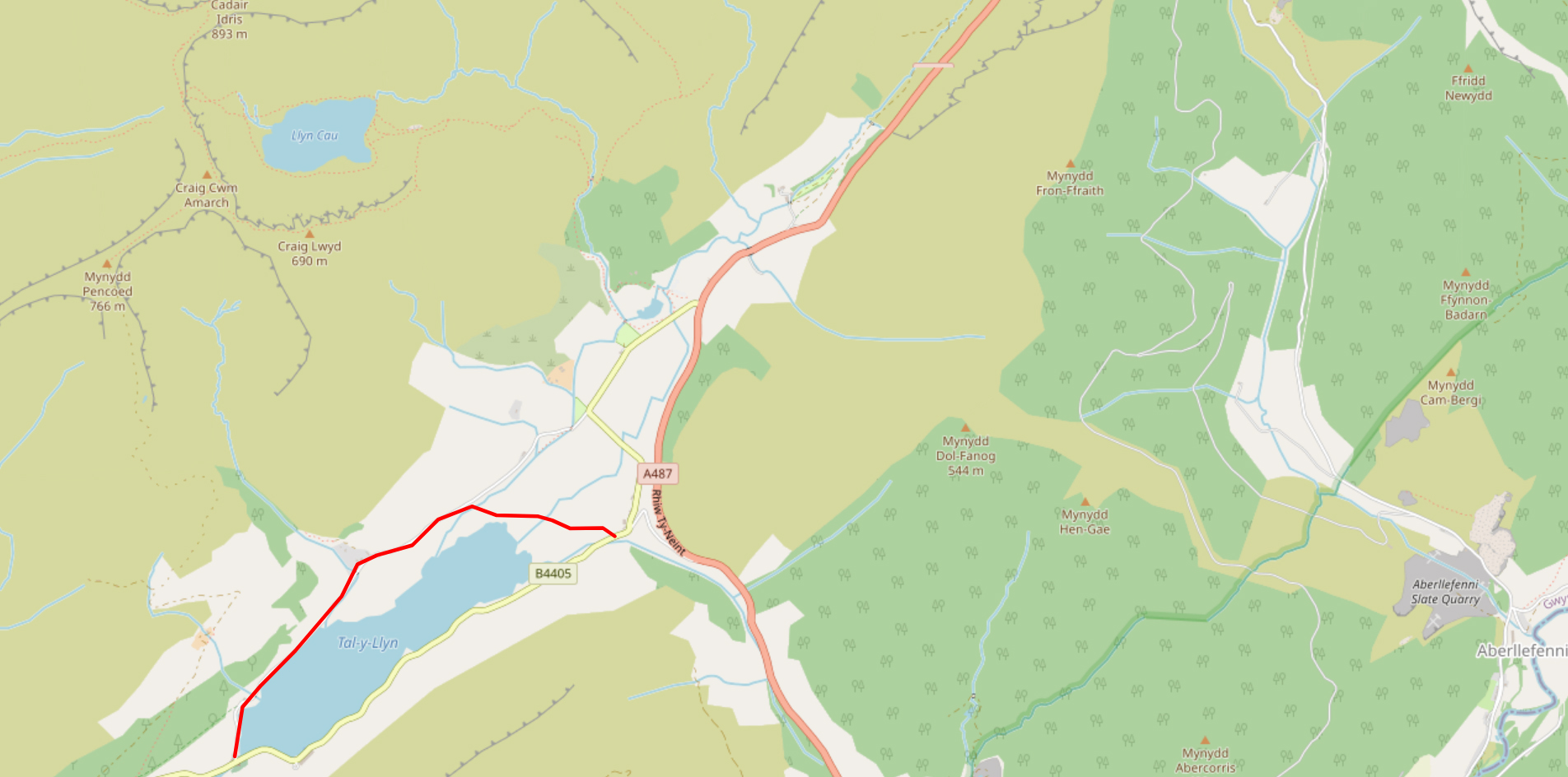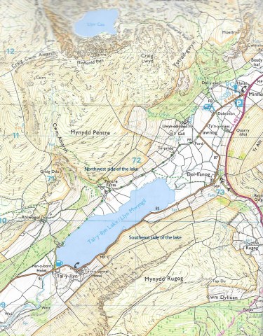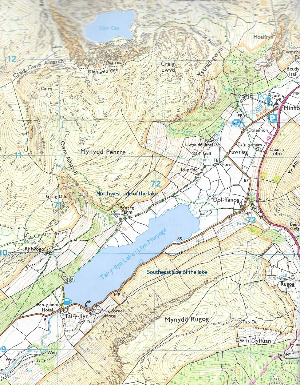 Tal y LLyn shown on the Ordnance Survey OS23 Explorer map (annotated). Click to enlarge and see more detail.