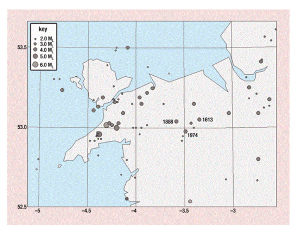 Seismicity of North Wales. Source: Musson 2006, p.5.11