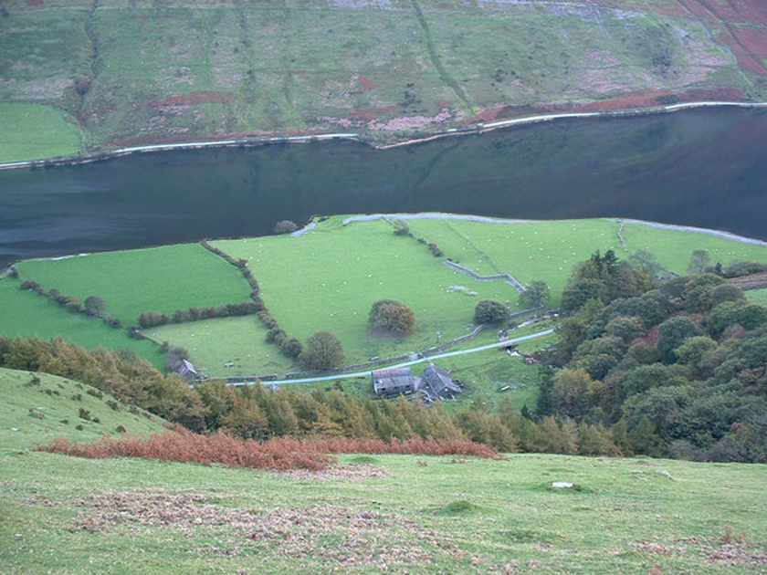 Stream entering Tal y Llyn at Pentre Farm, crossing the alluvial fan. Source: Geograph, Des Blenkinsopp