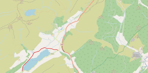The OL23 Ordnance Survey map, part of which is shown below, shows the lake’s name as “Tal-y-Llyn Lake / Llyn Mwyngil.” Tal y Llyn means “end of the lake,” which is the name of the cluster of buildings at the southwestern end of the lake. I expect that eventually naming the lake after the buildings was much the same as the situation with the village of Bala, where the lake is often referred to as Lake Bala, when its real name is actually Llyn Tegid. I have no idea what Mwyngil means. My excellent book of Welsh Place-names is silent on the subject, my Welsh-English dictionary is no help, and Google Translate translates it, somewhat bewilderingly, as “Morelil.” I’ve gone with the name Tal y Llyn, just because it is how it is most commonly referred to today.