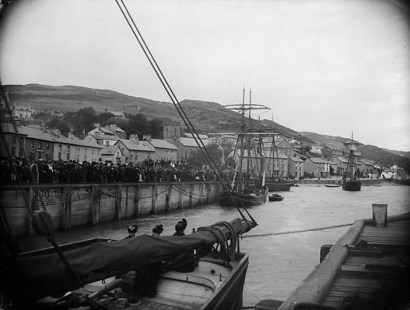 Crowds at the Aberdovey wharf at a regatta in c.1885. (National Library of Wales. Used under terms of license)