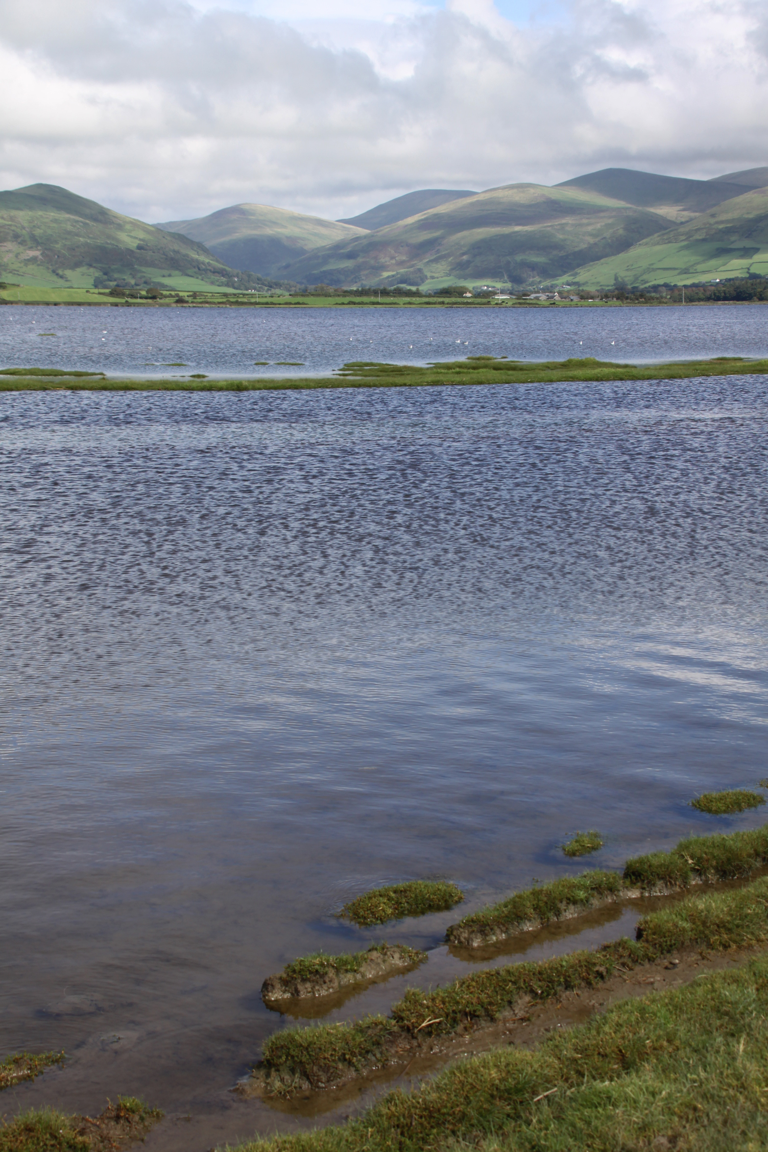 Last week I had already walked along Tonfanau beach, but was nowhere near ready to go home on such an unexpectedly sunny day.  The BBC weather website, which I checked just before I left the house, was promising storms so I had cancelled my plans to go hillfort hunting.  Although my walk started out with most of the surrounding hilltops sitting under large clouds, they eventually cleared and the sunshine was glorious.  So instead of going back to my car, parked by the Tonfanau footbridge, I turned along the footpath that wends its way along the southern banks of the broadwater and the river Dysynni, and I am so glad I did.  By the footbridge there were a couple of families with kayaks, all having a good, peaceful time, and a little further on there was a lady with two small boys swimming between the shore and a sandbank.  One of her sons announced with great satisfaction that that the water was “as hot as a bath.”  But the further I walked, the emptier it became, and eventually it was just me and the birds.  And what a lot of birds there were!