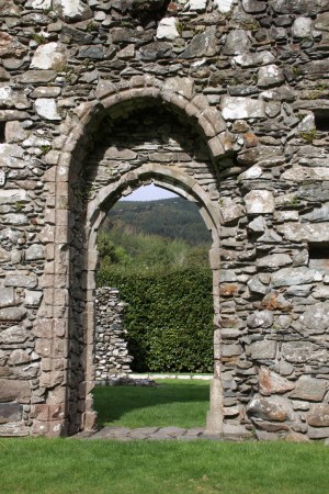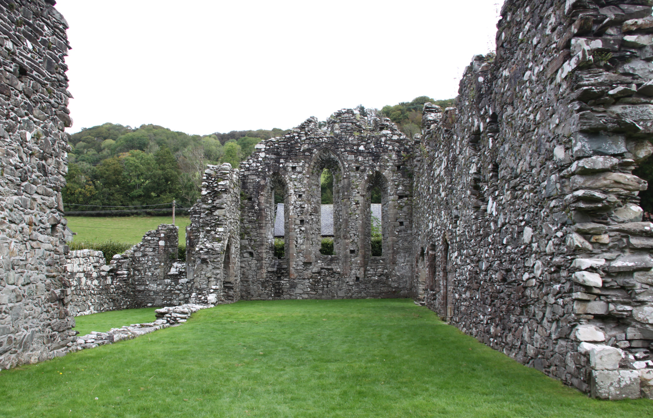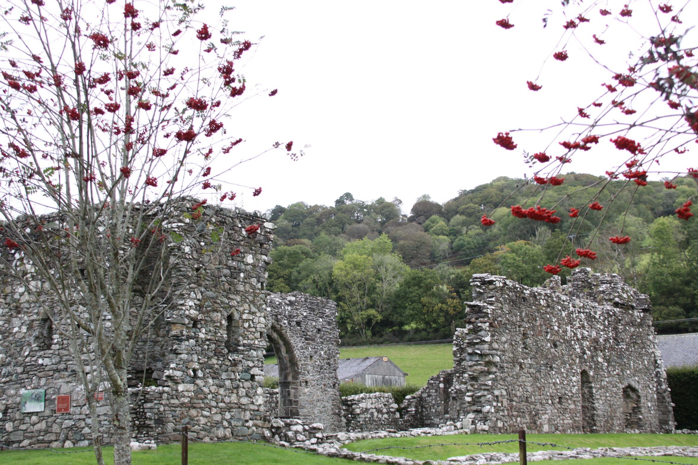 The quiet remains of Cymer Abbey lie in a scenic valley on the edge of a shallow, bubbling stretch of the river Mawddach, which itself evokes tranquillity and peace. In spite of being approached via a caravan park, it is a truly idyllic spot. Cymer Abbey, Kymer deu dyfyr, meaning “meeting of the waters” and dedicated to the Virgin Mary was founded in 1198 and was one of the northernmost Cistercian abbeys in Wales.