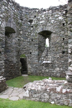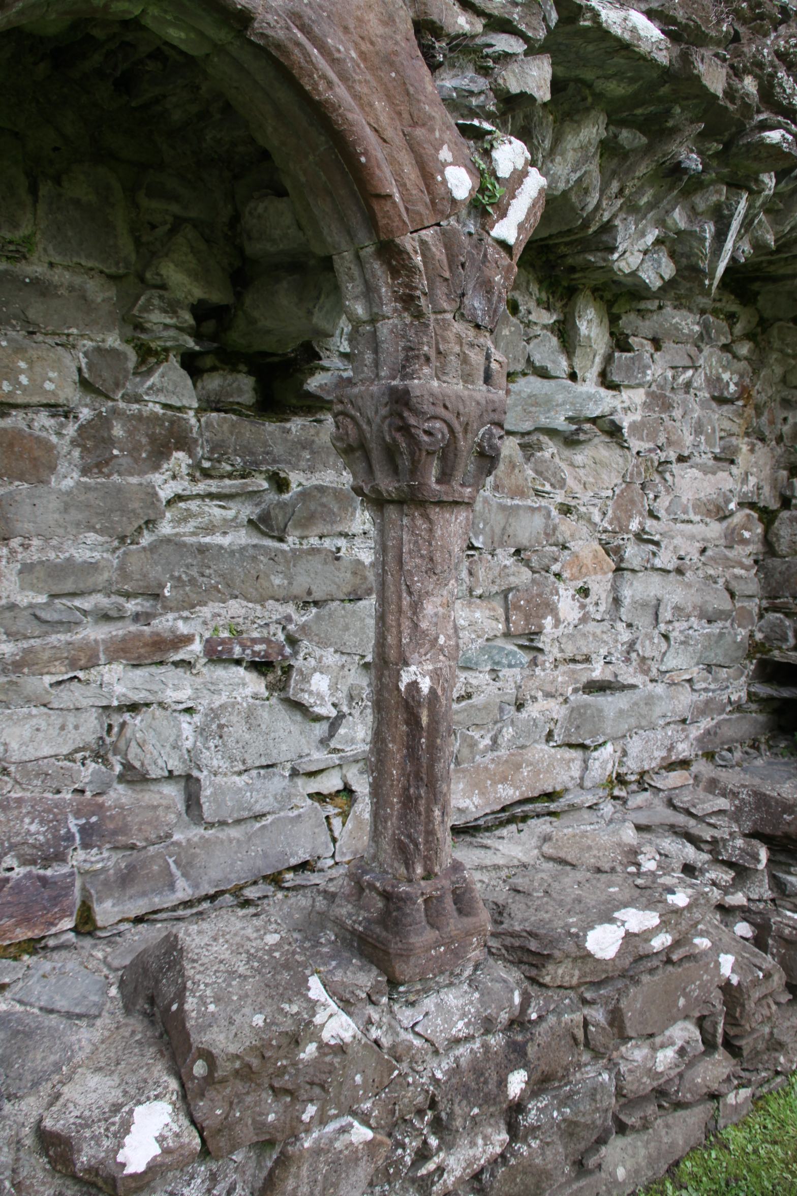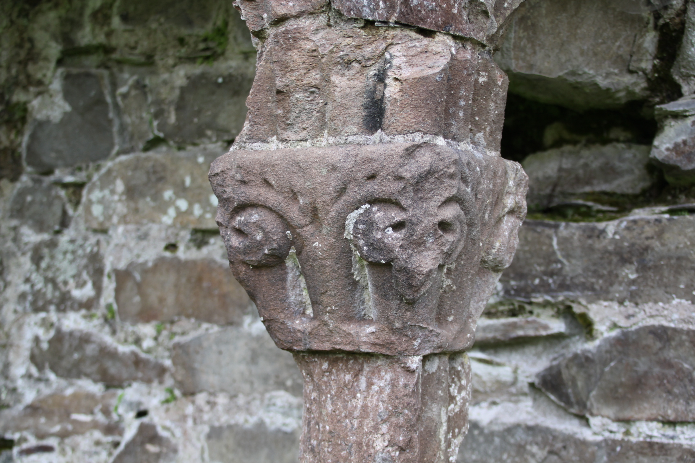 Normally, the church was the first building to be constructed in stone, with other accommodation built of wood until the church was complete, but at Cymer the ancillary buildings were built in stone even though the church was apparently incomplete, so it is all something of a puzzle. However, the small rectangle that made up the 13th Century church seems to have done the job of a larger entity, with the nave (reserved for the laity and visitors) at the west end, the monk’s choir in the middle, and the presbytery / chancel / sanctuary (the area around the high altar) at the end. The church was also divided into three sections length-ways by two aisles flanking the main central portion of the church (known as a basilica layout), achieved by adding columns and arches. At the business end of the church, where the monks worshipped eight times during the day and night, were some small decorative features, such as ornamental capitals at the top of columns. The main arch into the cloister was also slightly ornamental, and a tiny rose window topped the east end, but in keeping with Cistercian principles, there were few other ornamental flourishes, and although the abbey had a few pieces of fine silver ware, there would have been no stained glass, art works or tapestries.