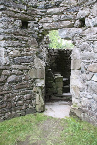 Spiral staircase in the 14th Century tower leading to – where? There was presumably an upper floor in the tower.