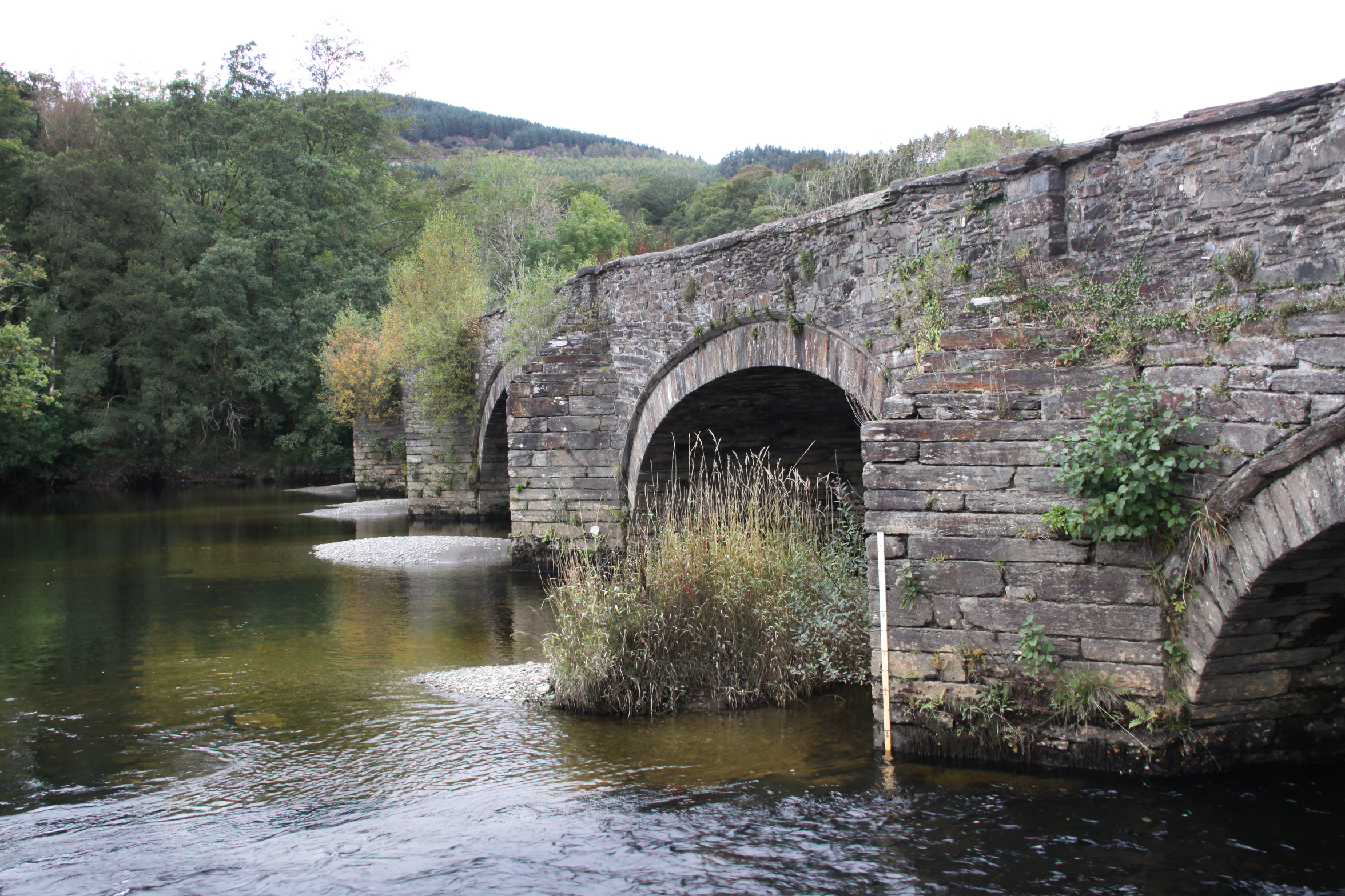 The river Mawddach, which was a ford during Medieval times, had a lovely road bridge built over it in the 18th Century, which is now a foot bridge. A car park on the Cymer side of Llanelltyd bridge is provided for those walking to the New Precipice Walk above the village of Llanelltyd on the other side of the bridge. The views from the bridge, both over the river and over the surrounding countryside, are well worth adding to the abbey visit. The bridge could do with a bit of maintenance, as the roots from the shrubs embedded into its brickwork will start to pull the mortar out and undermine the structure of the bridge.