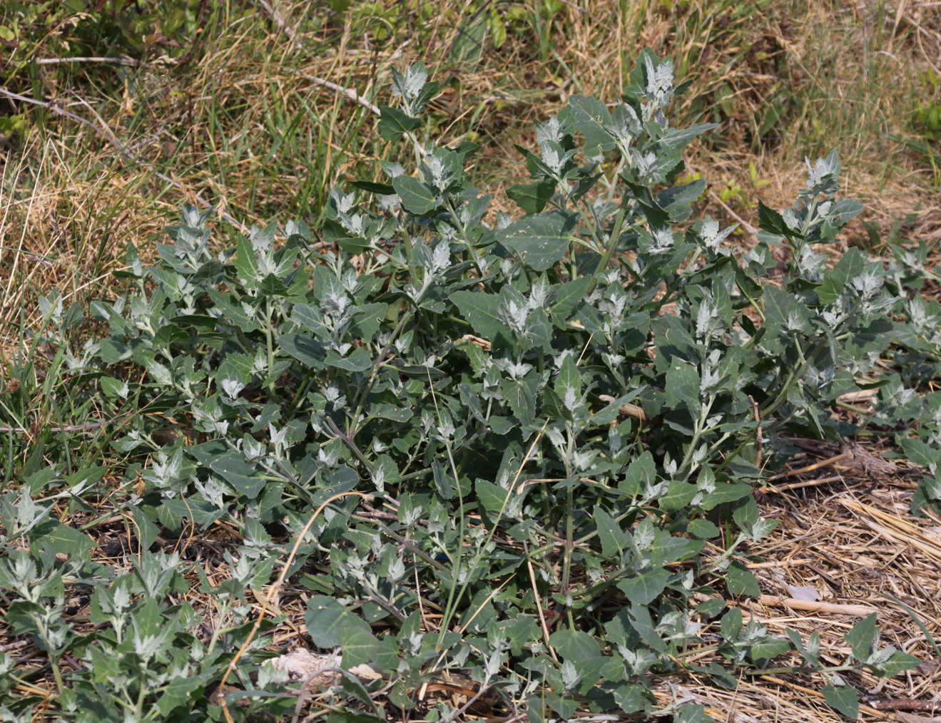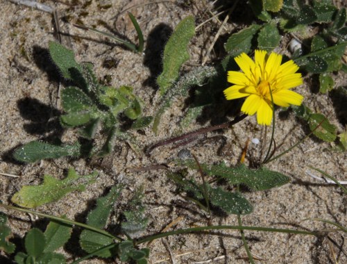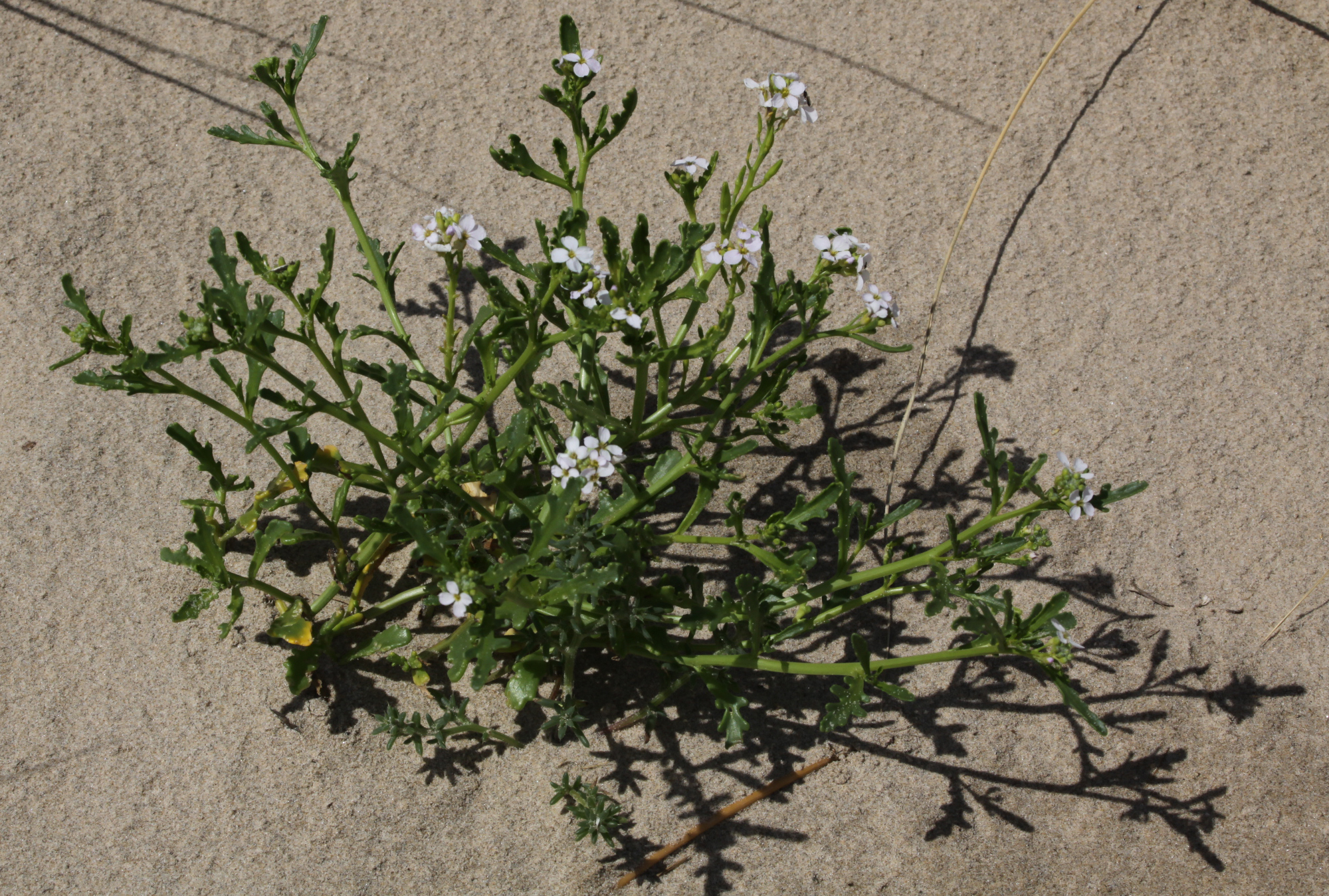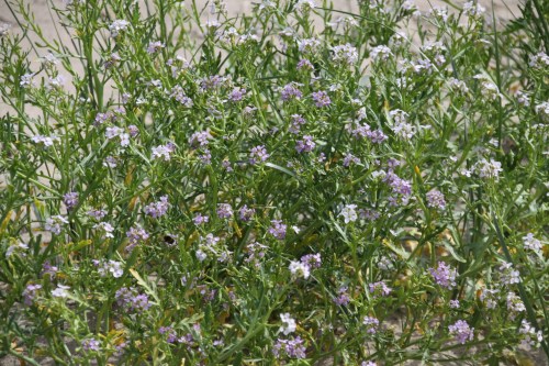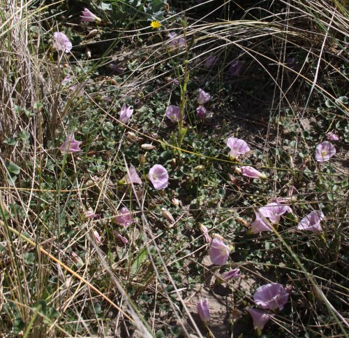 The perennial sea beet (Beta vulgaris subsp. maritima) and the orache are side by side at the edge of the dunes, both huge clumps, both common at the edges of sand dunes. Sea beet has a tall, spiky clumps of flowers straggling across the top of the plant. Sea beet is both drought and saline tolerant. It is the wild version of a version that was cultivated in the Middle East for its roots and leaves. Sea beet is easily confused with fat hen (Chenopodium album) and both are members of the Chenopodiaceae, but the leaves have very different edges. Sea beet leaves have a smooth, untoothed margin, whereas fat hen leaves look more like orache, with a toothed margin. Sea beet is a popular foraging ingredient, with smaller, younger leaves used in salads and bigger leaves spinach in a tiny amount of water for a few minutes, like spinach. Squeeze out the water, return to the pan with some butter, and you have a much tangier version of spinach. On my to-do list.