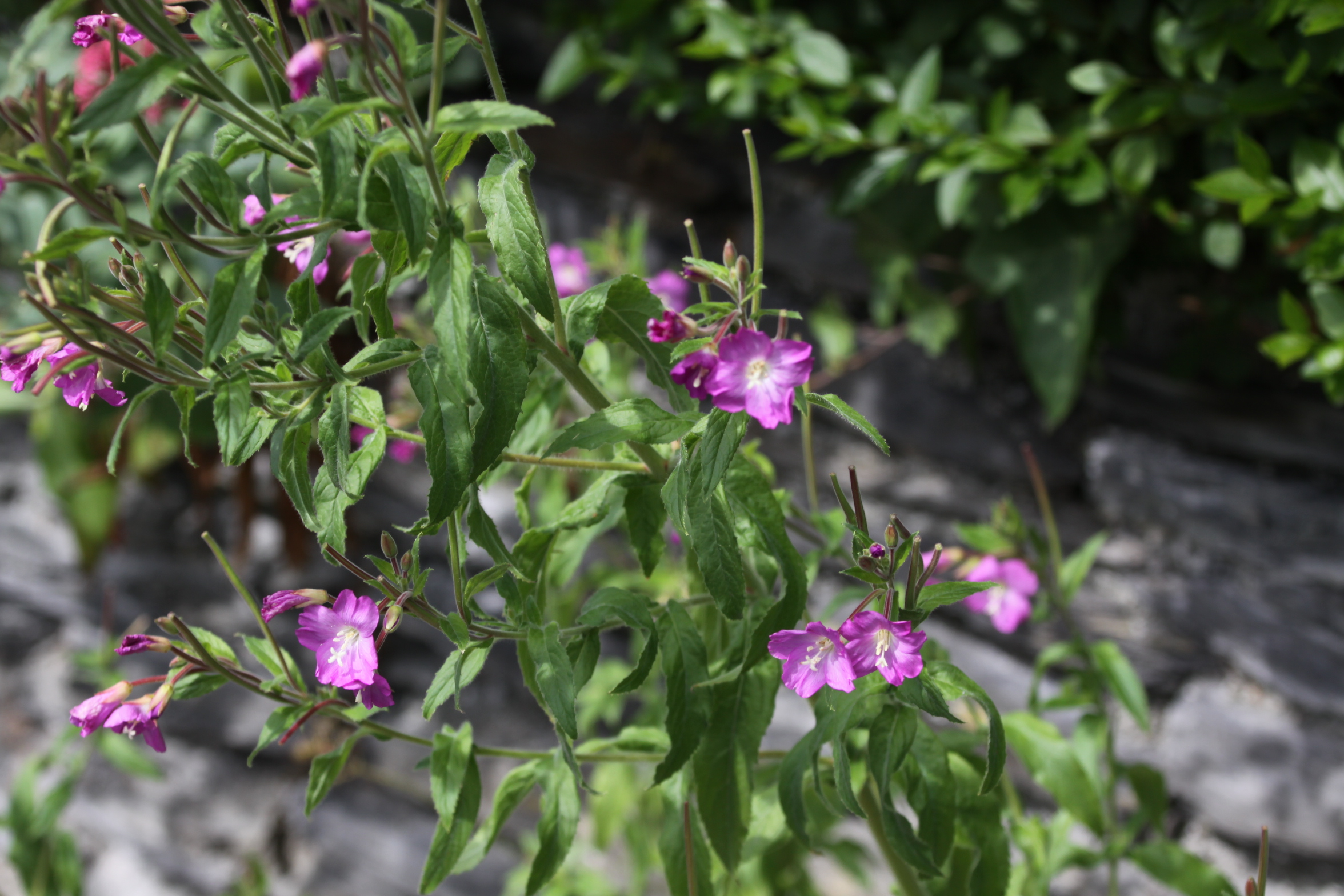 Rosebay willowherb (Chamerion angustifolium) is a spreading perennial up to 1.5m tall. It colonized bomb sites during the Second World War and became known as “fireweed.” It spreads both by rhizomes and by seed, so where it is found, it is usually widespread, and the the rhizomes mean that a whole patch may actually be a single plant. Delicate Four-petalled pink flowers with white stamens that climb the stem go over first at the bast and continue to be in bud at the top, meaning that they may stay in flower from June to September. Its leaves used to be used as in infusion to substitute for tea.