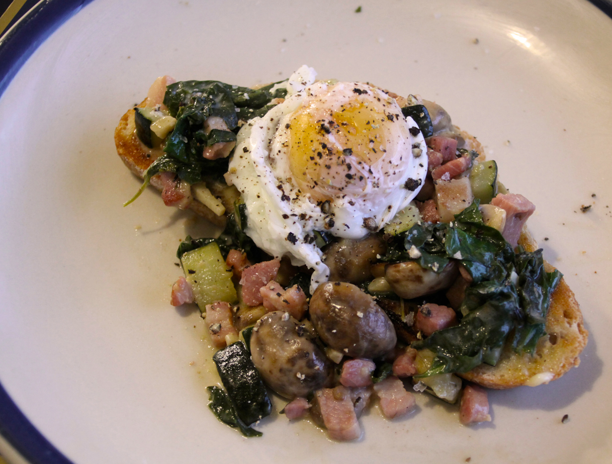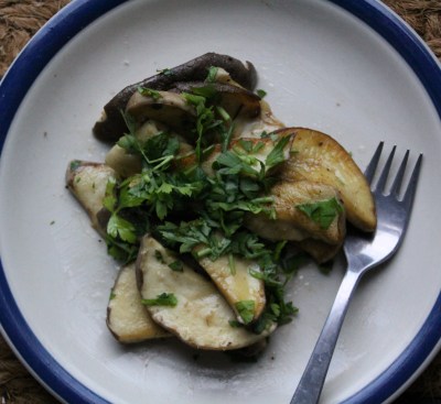 The last triumph of the day was the discovery of some field mushrooms and some baby puffballs. I had the puffballs tossed in butter and added at the last minute to a slow cooker stew with French smoked sausages, onion, garlic, dried ceps, savoy cabbage and peeled baby new potatoes. The puffballs were mushroomy but delicate, a real treat.