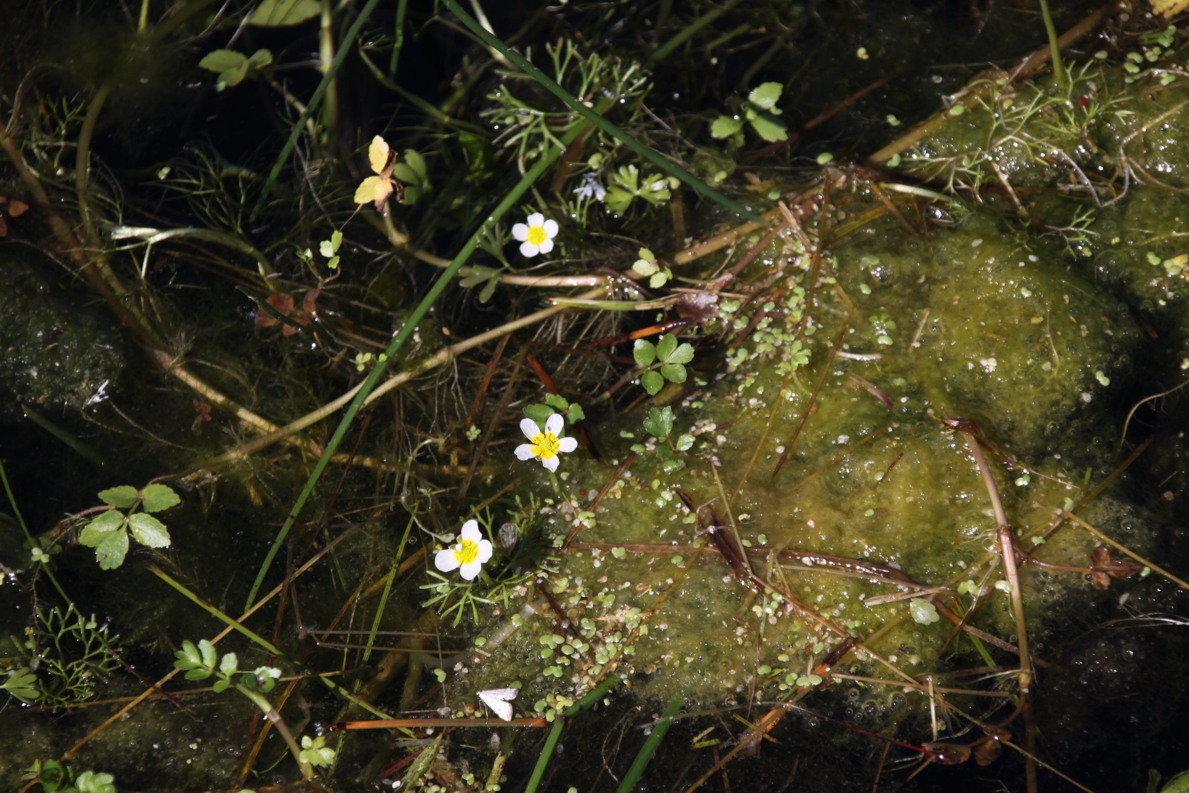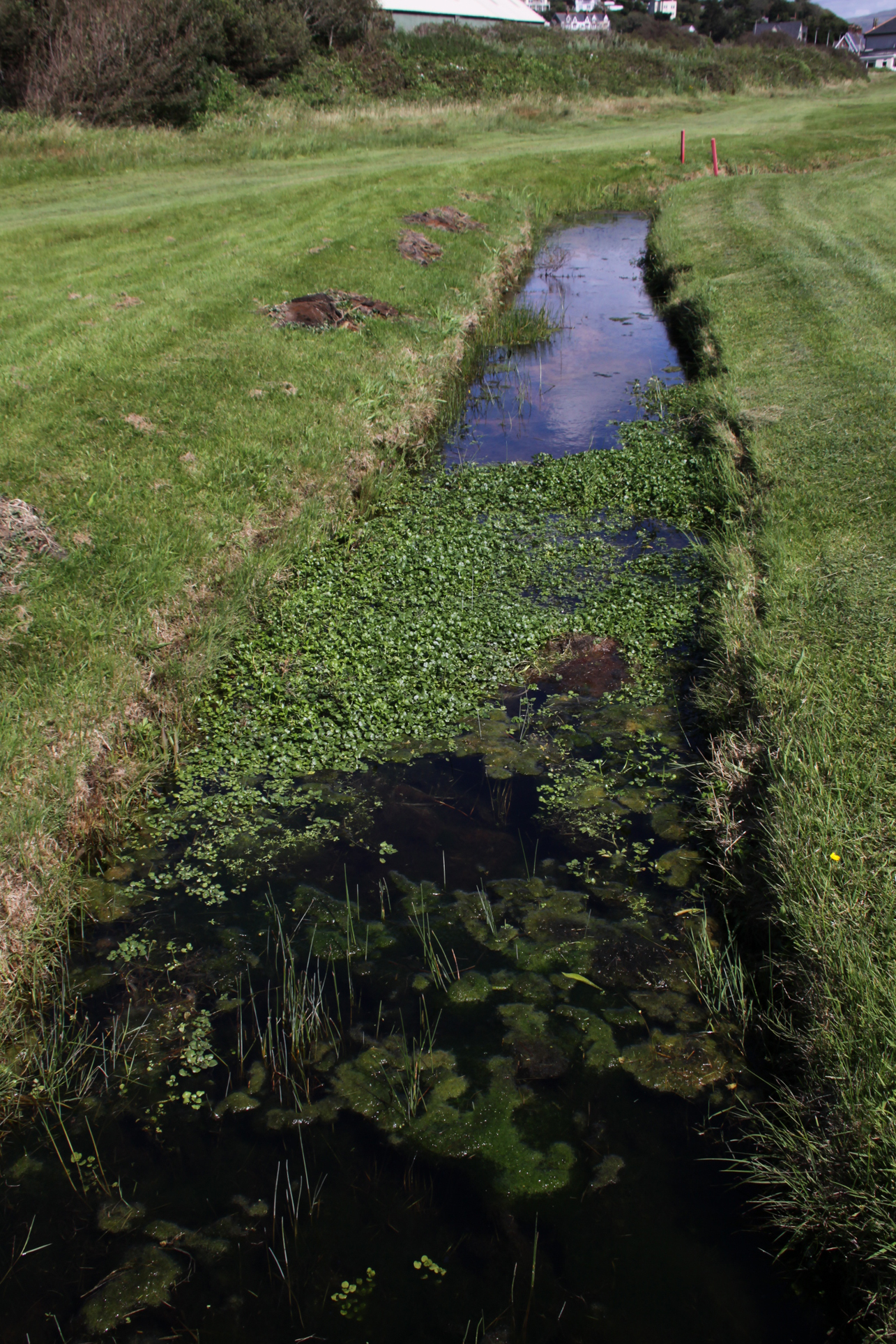 Marsh pennywort (Hydrocotyle vulgaris) is very similar to the more widespread wall pennywort (Umbilicus rupestris), but grows in marshy areas, whilst wall pennywort grows, as the names suggests, out of walls (and is widespread in Aberdovey). This particular marsh pennywort was growing out of the side of one of the drainage streams on the golf course. It is less waxy and succulent than wall pennywort, as it doesn’t need to store as much water. Both are edible as leaves in salads and as garnishes with much the same flavour. The flavour can be variable, so although it tastes a bit like cucumber, it can be bitter, and a leaf should be tasted before picking more.