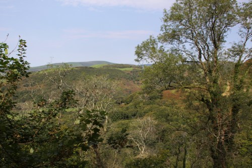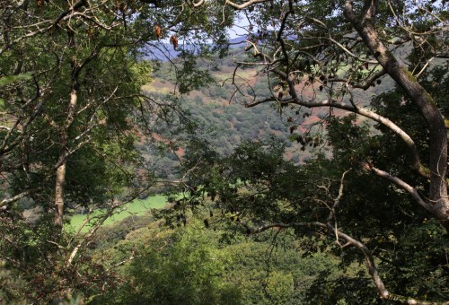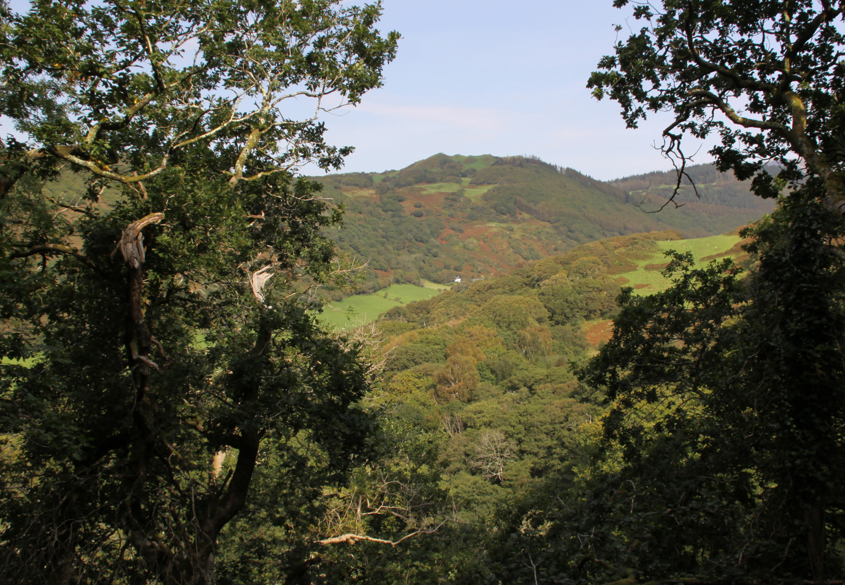 The lower sections of the falls were fairly busy.  The Tal y Llyn steam train had arrived a little time before, and there were a few groups of people taking photos from the viewing platforms, but beyond these I had the long circuit to myself.  I didn’t see another person until I descended once again to the lower levels.  Bliss.  The higher you go, the further you go from the falls, but you can hear them clearly, a delicious sound as you walk through the dense greenery, emerging at treetop level with views across the hilltops.
