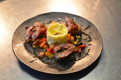 After scoring the layer of fat on top and studding it with the garlic and herbs, I dotted it with butter to help it along, and browned it in a pre-heated oven on high for 10 minutes and then cooked it on gas mark 3 for an hour, which was perfect. It was very tender and the delicacy of the flavour went beautifully with a light rosemary gravy, a mint and caper sauce and the steamed sweetheart cabbage and runner beans. The carrot and swede mash was as good as usual. I had leftover gravy in the freezer from my last foray, and combined this with the juices that accumulated during roasting, and drained off the fat from the gravy before serving.