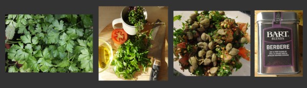 By contrast, the toasted white cob was crispy, and the home made smoked mackerel pate had a spicy edge. The recipe is my mother’s. The smoked mackerel is skinned and then mashed with a fork. Soft butter is mashed into it, again with a fork, and herbs and spices are added: fresh thyme or sage (I used thyme), cayenne for heat and Tabasco if the cayenne isn’t hot enough, ground cumin, garam masala, a little white wine vinegar, quite a bit of lemon juice and freshly ground pepper and sea/rock salt. The vinegar and lemon juice not only add flavour of their own but also bring out the other flavours. Fresh thyme, sage or oregano sprinkled over the top and a good squeeze of lemon juice complete the flavour sensation.