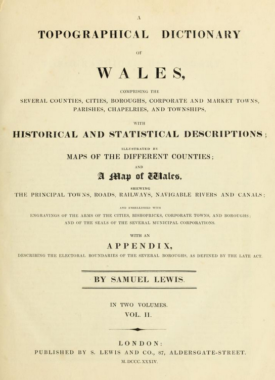 Lewis, S. 1849.  A topographical history of Wales.https://www.british-history.ac.uk/topographical-dict/wales