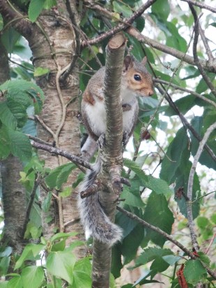 I had a visitor today, trying to find a way into my squirrel-proof bird feeder. A friend of mine refers to squirrels as rats with tails, but they have supporters because of their endearing features, the bushy tail and their gymnastic abilities. They are often audacious, quite tame and can be very entertaining to watch. Their detractors consider them to be vermin, with good reason. They steal bird eggs and eat baby birds, dig up and eat spring and summer bulbs and new shoots, and they chew through tree bark, leaving the tree vulnerable to disease. They also carry squirrelpox (to which they are themselves immune, but to which red squirrels are vulnerable), and they replaced the far less destructive red squirrel, which is now confined to more marginal areas.