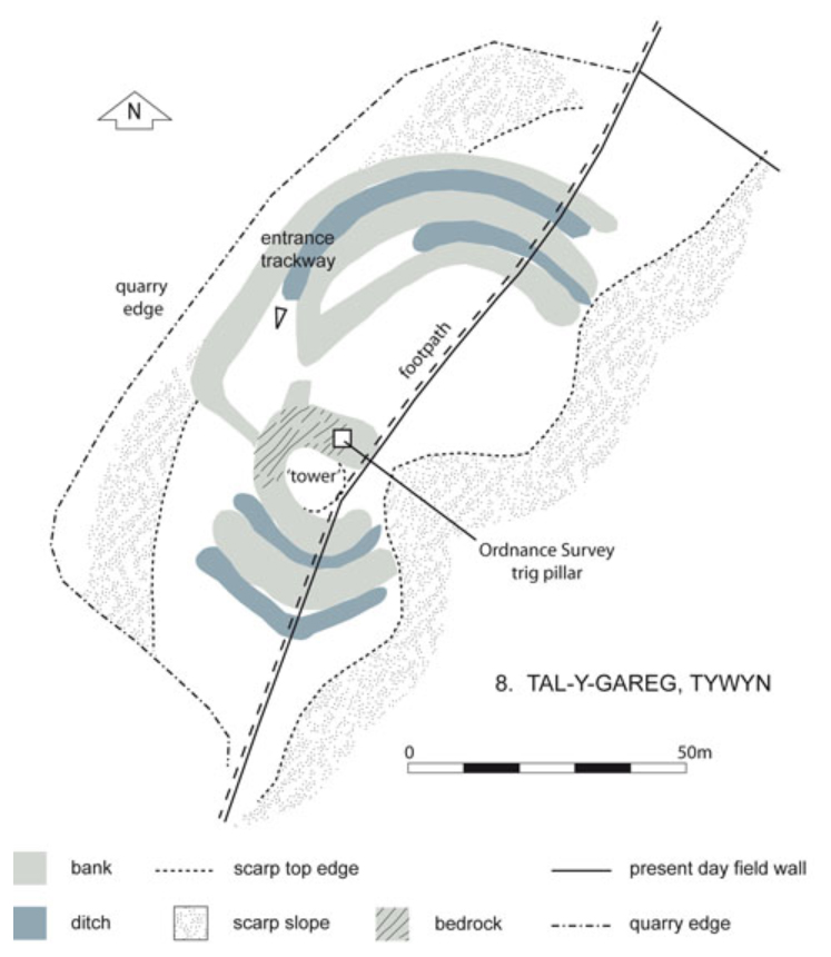 Castell y Gaer site plan. Source: Bowen and Gresham 1967