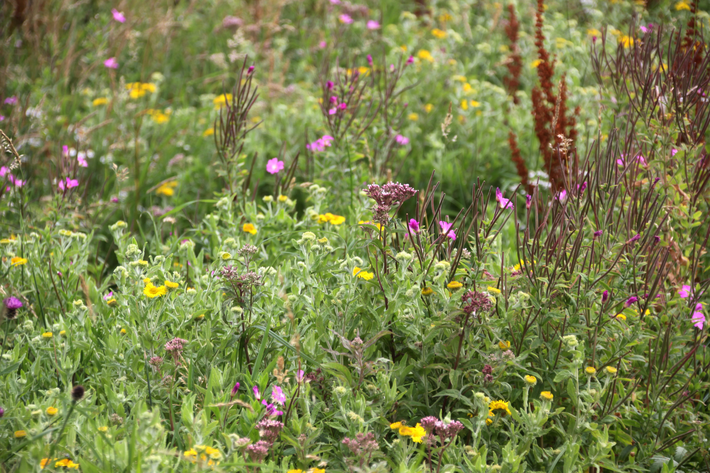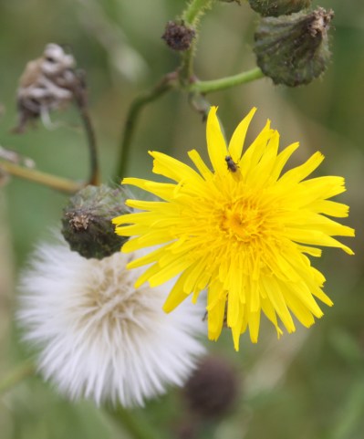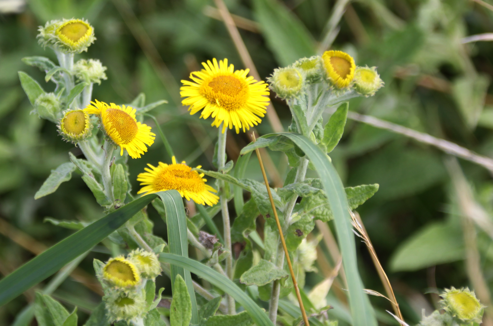 Common fleabane (Pulicaria dysenterica).  Pulix in Latin means flea, and the plant was used was used as a flea deterrent.