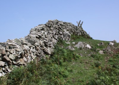 One slight oddity if the hillfort was to impress, is that it is not visible from a distance.  It is only when one is almost upon it that the impressive stonework comes into view.  Its appearance is defensive, because the ramparts are large and stone-faced, and the entrance well built, but the approach is not particularly challenging.  I paused twice for a breather on my way up, but I’m in my mid 50s and not at optimal fitness.  For a fit person it would present no difficulties at all, and for a hypothetical raiding party accustomed to such tasks it would have been all in a day’s work.  The approach is out of direct line of sight of the hillfort itself, and partly obscured even from the summit.  If its role was primarily defensive, lookouts would have to be stationed in the area to ensure that any threat was detected early.  its potential as a defensible retreat was tried and tested during the 10th Century AD when, according to a publication by Snowdownia Active, Tywyn was attacked and burned by Norsemen.  When they approached from the sea a warning beacon was lit on the coast, and Tywyn residents retreated to Craig yr Aderyn.  There are related theories for use.  One  are that the site might have been used as a refuge for local farming families or the most important of the local elite if there was conflict over land, or it could have been used as a secure communal store for important raw materials, food and craft products, including livestock.  There is really nothing to help narrow down a precise role.