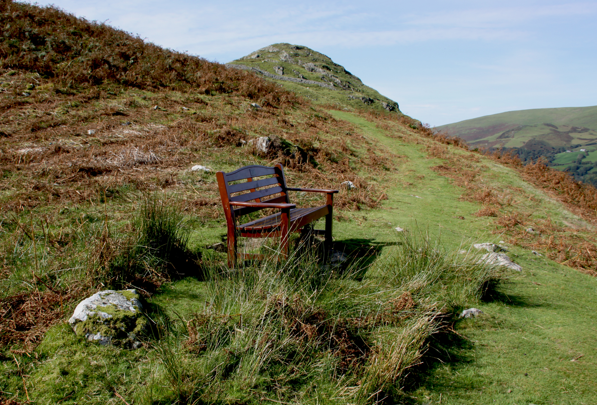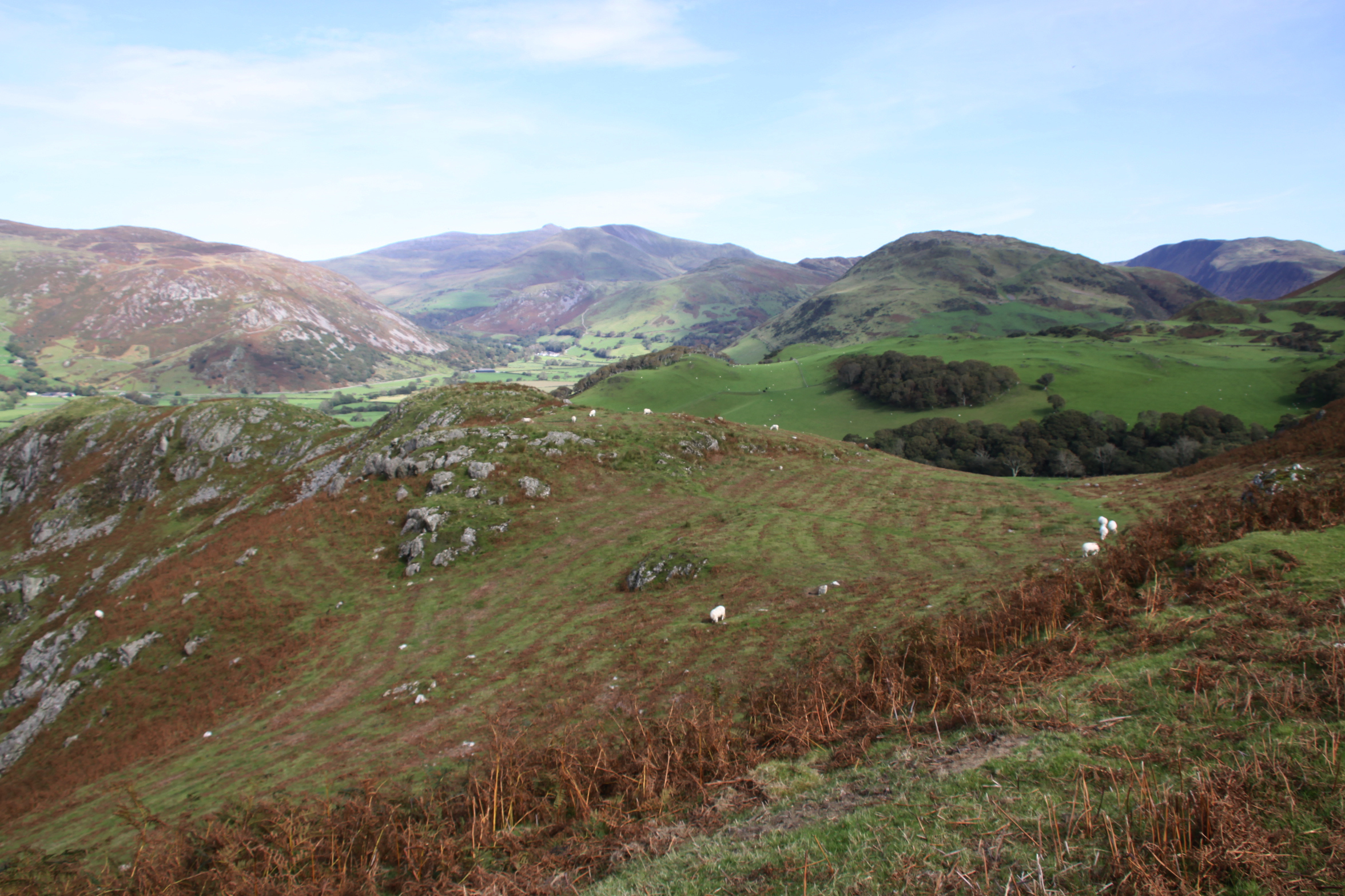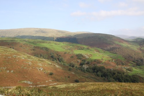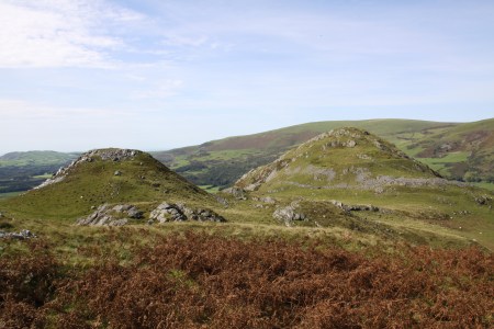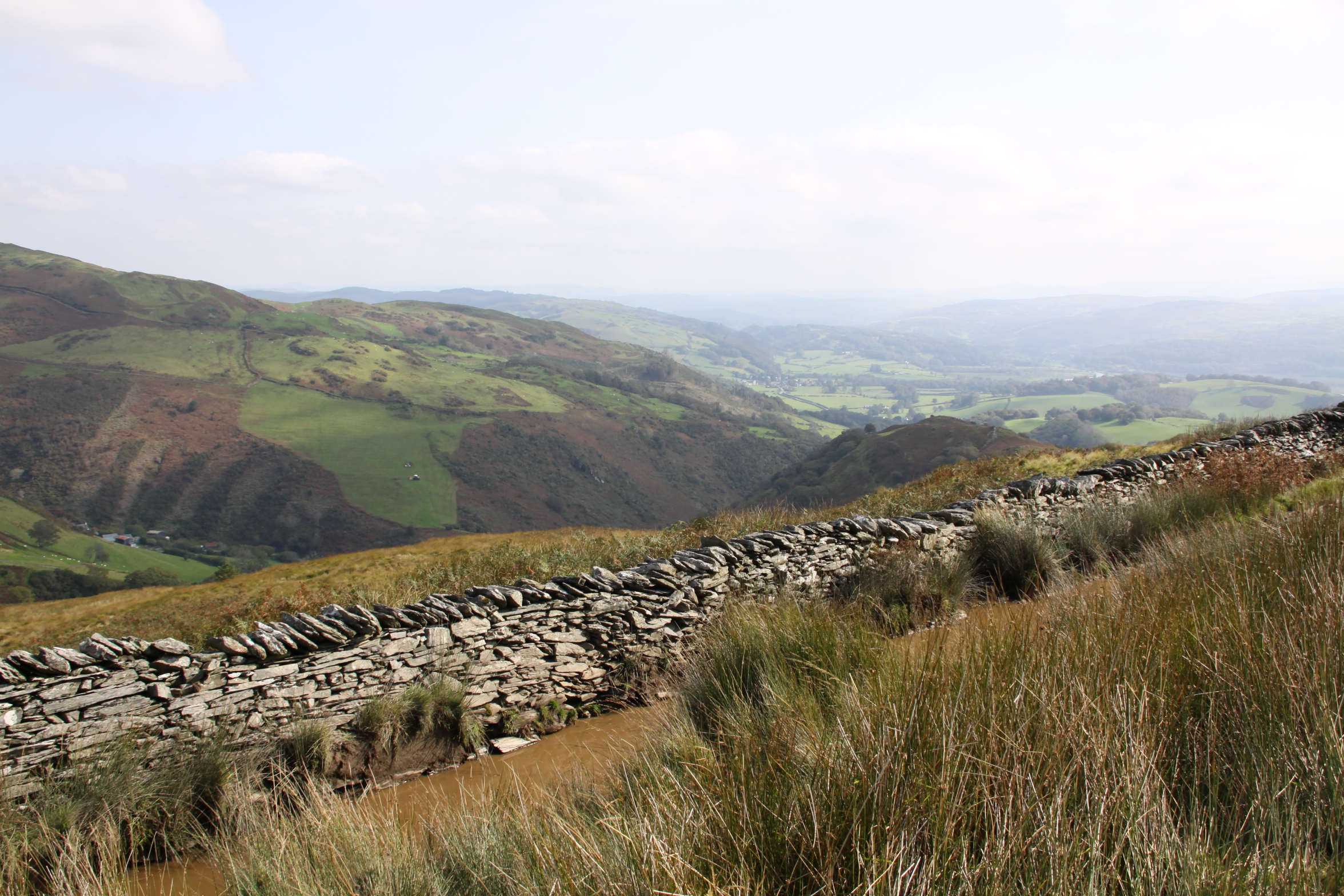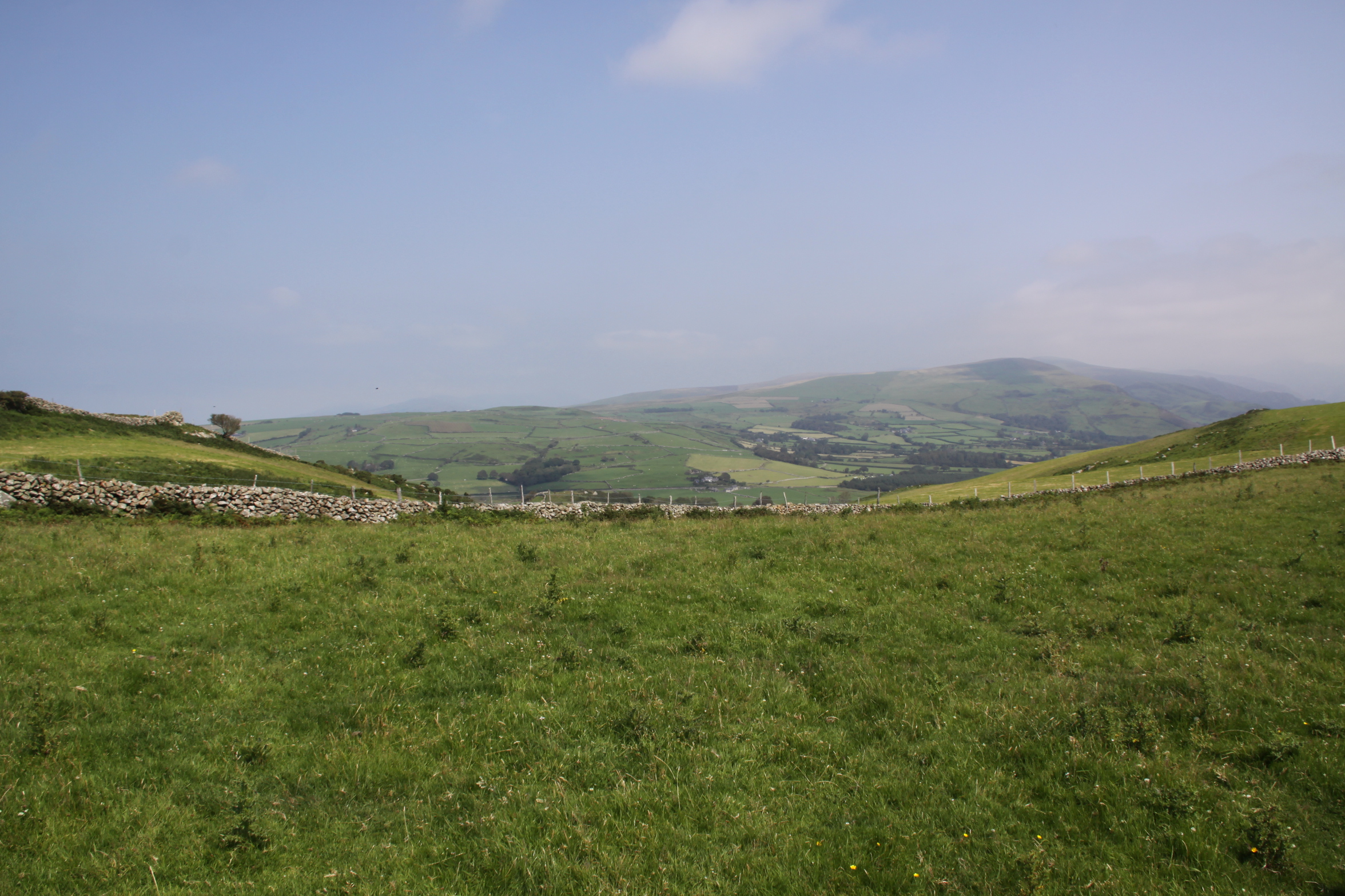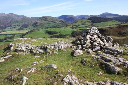 The location of the site is commanding.  It is c.9 km inland and therefore although the sea is visible, it has no view over the comings and goings of anything that was travelling along the coast.  If it was in league with any or all of the Tal y Garreg, Llechlwyd or Castell Mawr hillforts, that may not have been important.  What it did have, and still does, is  remarkable views over the Dysynni valley to the west and east from the summit, and good views towards the hill slopes to the north and south.   It is lower than many of the surrounding hills to north and south, but difficult to reach except via the saddle connecting it to the main hillside to its north.