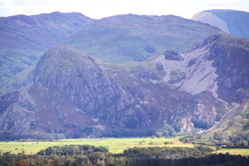 Looking up at Craig yr Aderyn from the medieval castle Castell y Bere in the Dysynni valley to the west