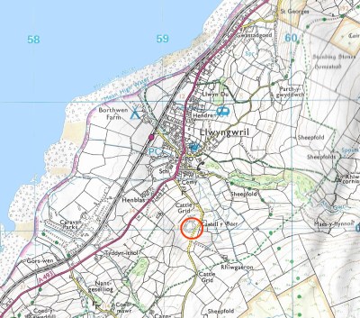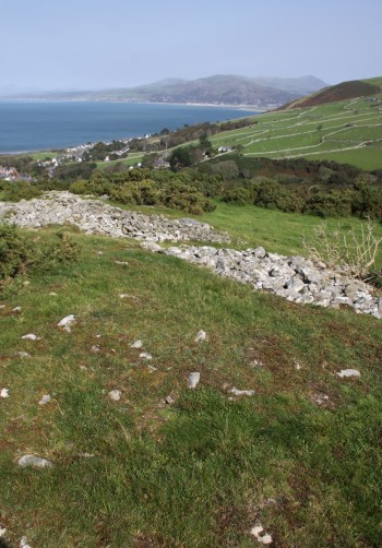 Although I included this as a possible outlier of the Dysynni and Dyfi hillfort group, I suspect that it is probably part of the Mawddach group, although at the moment, not having seen or read about any of the Mawddach hillforts, that’s just a guess.  This does not mean that it would not have been in communication with hillforts to the south, or that it did not have a potentially pivotal role in communication between north and south along the coast, but its main physical orientation to the north, its views to the north and its distinctive architectural features, suggest that it may be part of a slightly different tradition.