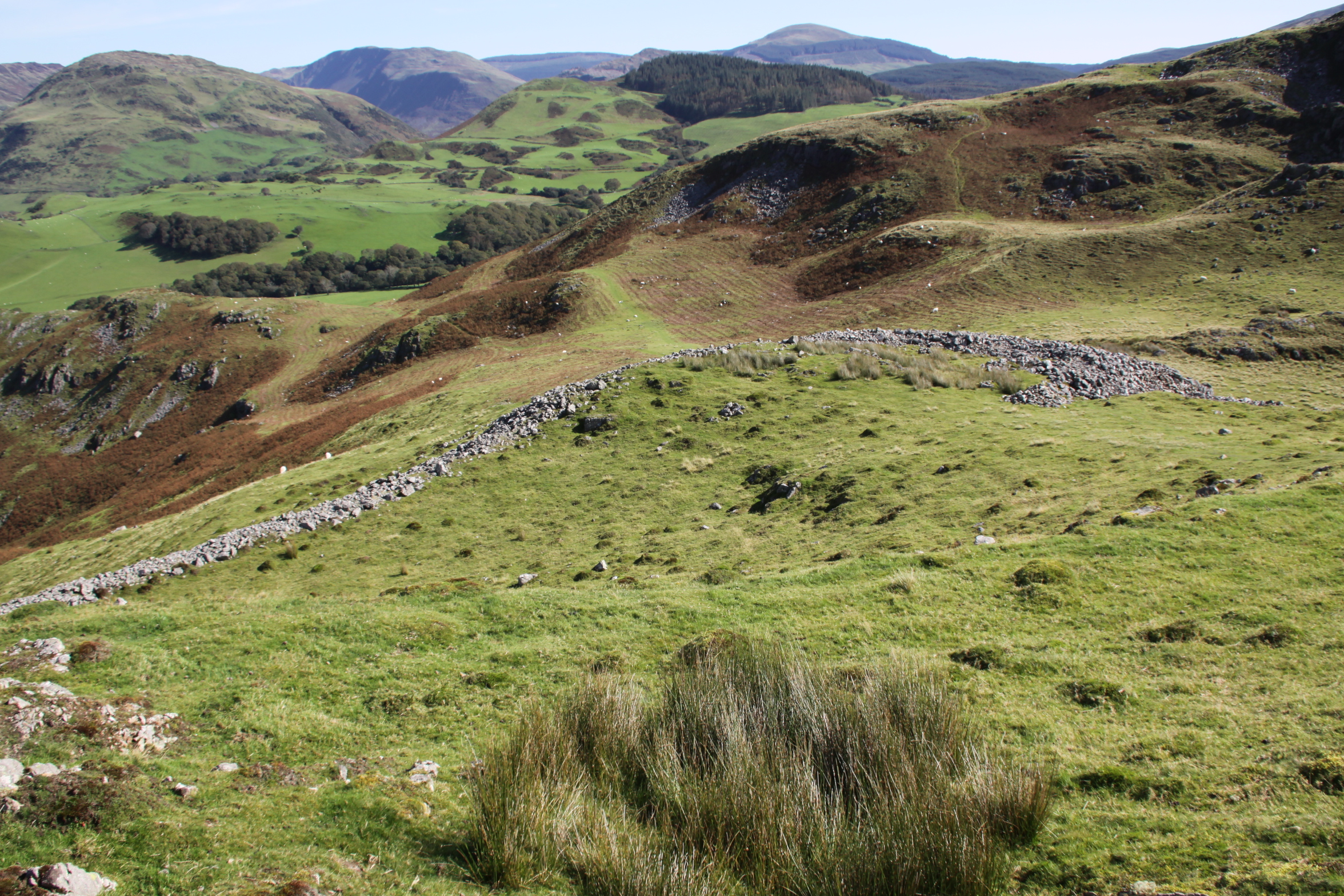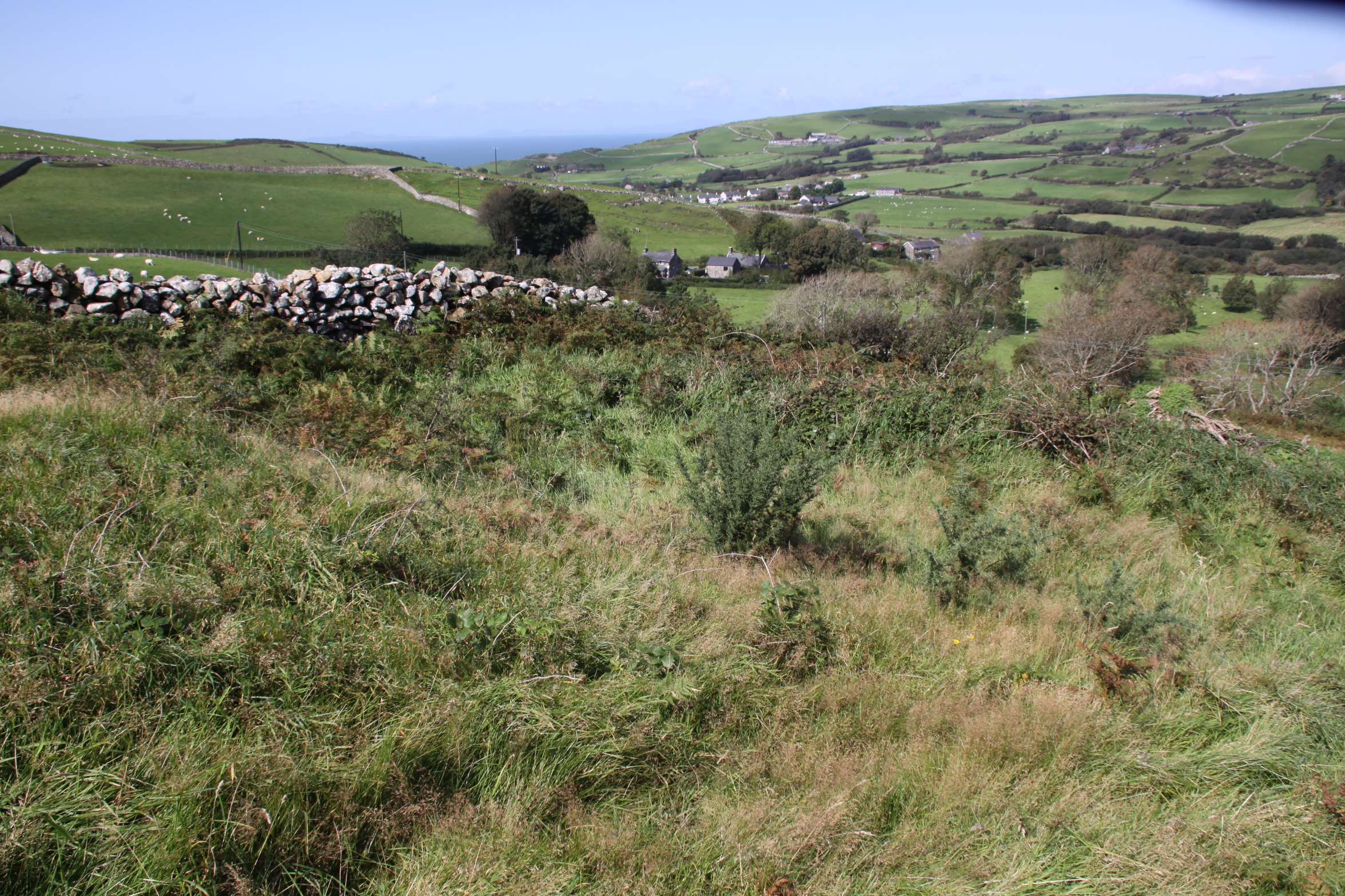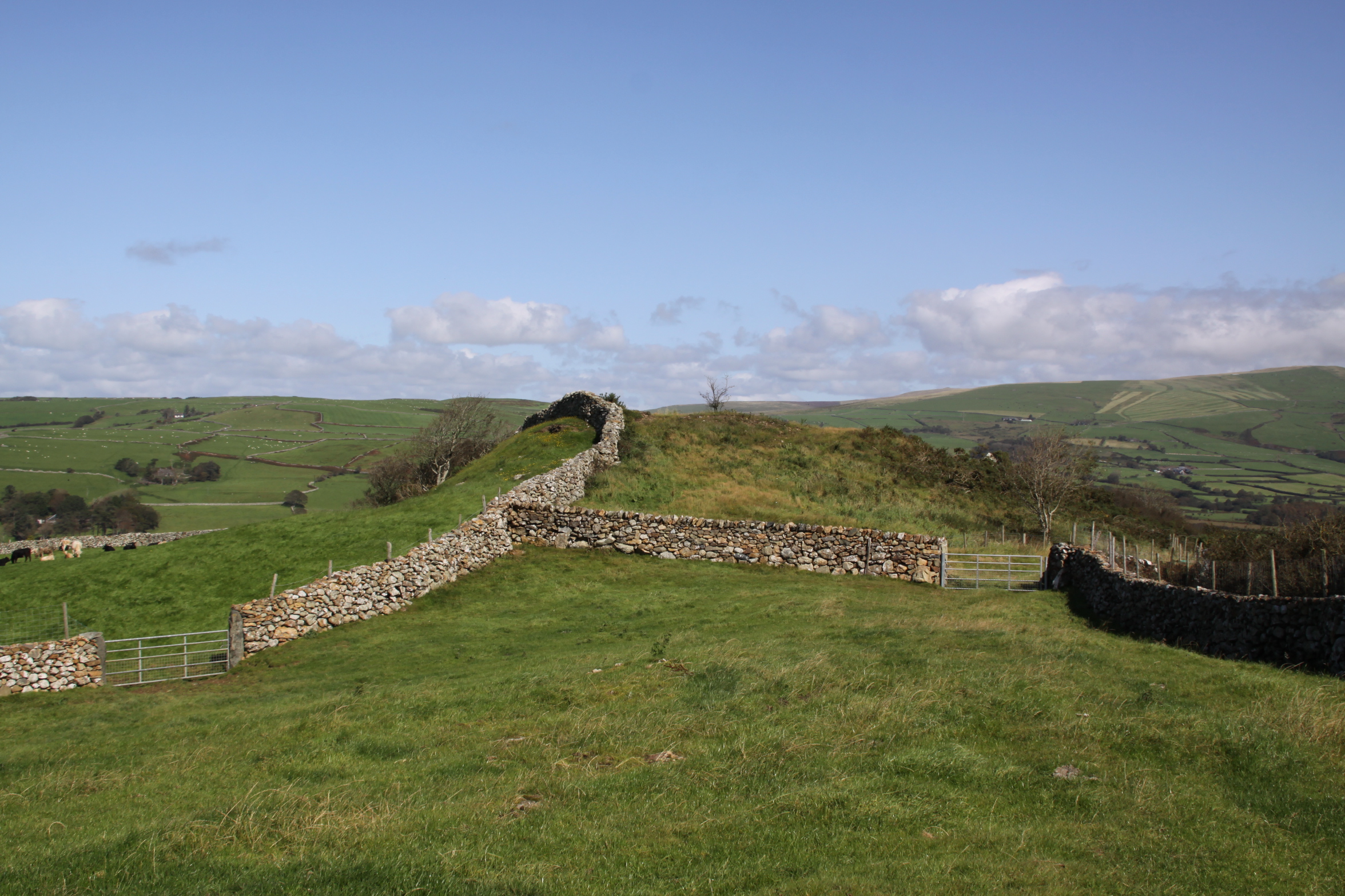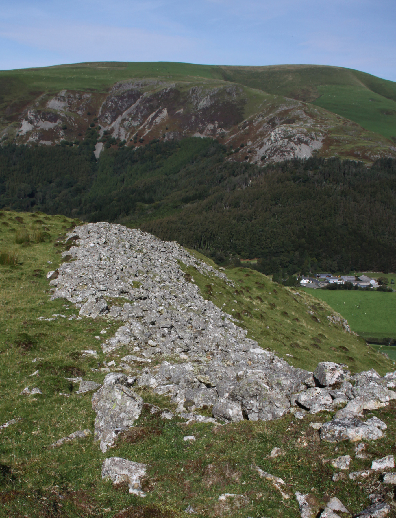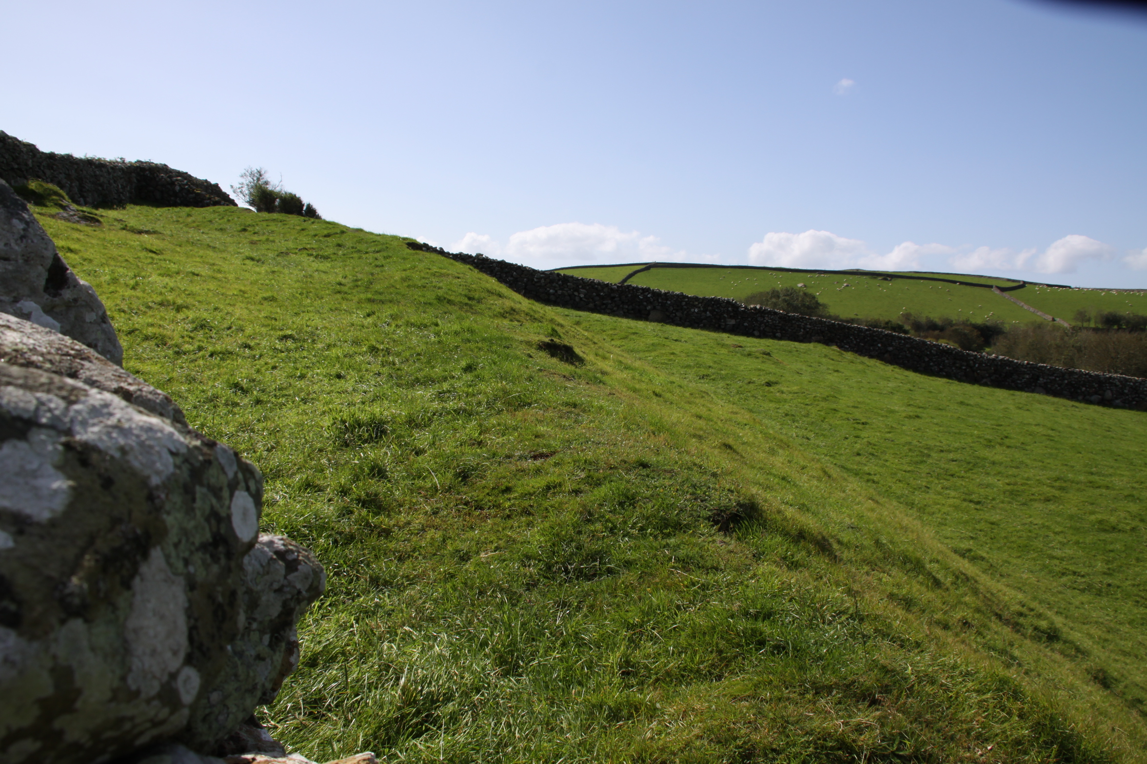 The stone-faced ramparts and entrance are themselves interesting, unique in the Dysynni area, and suggest that the site was particularly important to its builders.  In his overview of the Iron Age, Timothy Darvill in his overview of mentions that after c.400BC a number of sites were provided with sloping stone-faced ramparts, which he suggests were as much for ostentation as defense.  In a more recent discussion, focused on the Ceredigion hillforts, Toby Driver points to these as a recurring theme in that area, and he too suggests that they may have been intended to give the appearance of strength, a deterrent rather than being strictly defensive.  Although they would have required substantial investment in effort to build them, they would have been relatively easy to maintain, as their survival today demonstrates.