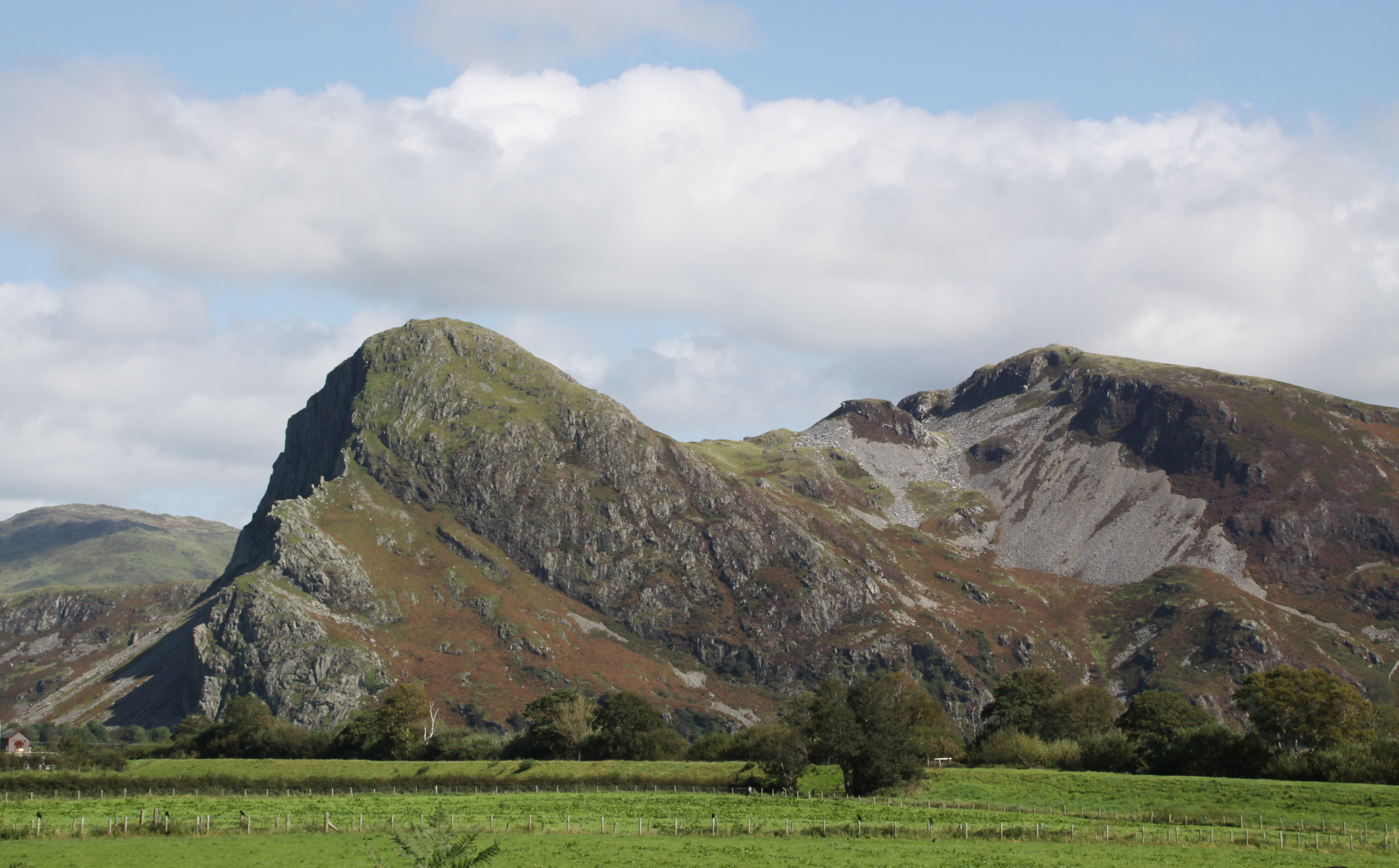 According to a Snowdonia Active publication (2018) the crag is made of rhyolitic tuff, rock formed from volcanic ash laid down after a major eruption through the Bala fault line c.800 million years ago.  It is separated from the hillside behind it by a saddle or col 100ft below the peak.  Its distinctive shape is immediately recognizable from miles around, almost always visible in the Dysynni area.  Its gaze always seems to follow you around.  Its summit is at 230m OD (700ft).  The hillfort is lower, at about 180 OD, 10m higher than the 170m OD Tal y Garreg, the next highest hillfort in the area.  Although the north face of the crag is very steep, the home of nesting birds and a route for rock climbers, there is a much more gradual approach to the rear.