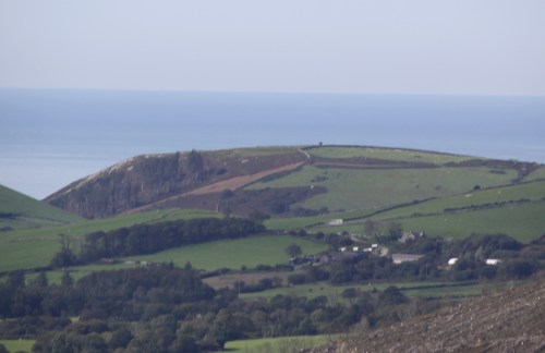 This can hardly be termed a walk, because the B-road runs around 15ft from the ramparts on an unenclosed section of open hillside overlooking the sea.  I certainly had a good walk on and around it, but it was not a walk in its own right, and I went elsewhere to stretch my legs properly afterwards.  For those of you hoping that the endless posts about hillforts will eventually come to an end – five down, four to go, plus a summary post 🙂   If you are wondering about the sunshine, this was actually on the 17th September, but I have a bit of a backlog at the moment.