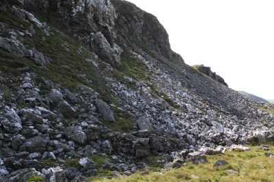 The find spot is marked by a prominent glacial boulder, naturally fallen into its present position and propped up on massive upright stones so as to resemble an artificial ‘burial chamber’.  Beneath the boulder is a dark, naturally formed ‘chamber’ which may have attracted Iron Age people to use the site as a place of deposition. The find spot lies alongside the modern Minffordd path up to Llyn Cau and Cadair Idris, suggesting considerable antiquity to this particular route. Across the path from the propped boulder, and below the line of the track, is a likely former spring head formed of rock slabs on three sides of a cleared, damp area. This spring head may have further influenced the hoard site. The boulder marking the find spot is the most prominent and impressive of its kind flanking the path as it ascends from the valley floor to the open mountain above. It is perhaps the only boulder formation which may have suggested an artificial construct or chamber to Iron Age people. It is likely that the corrie lake at Llyn Cau was the focus for any traveller climbing this path in antiquity, perhaps for ritual purposes, and therefore the attribution of the hoard to ‘Tal-y-llyn’ is potentially misleading in the interpretation of its landscape context.
