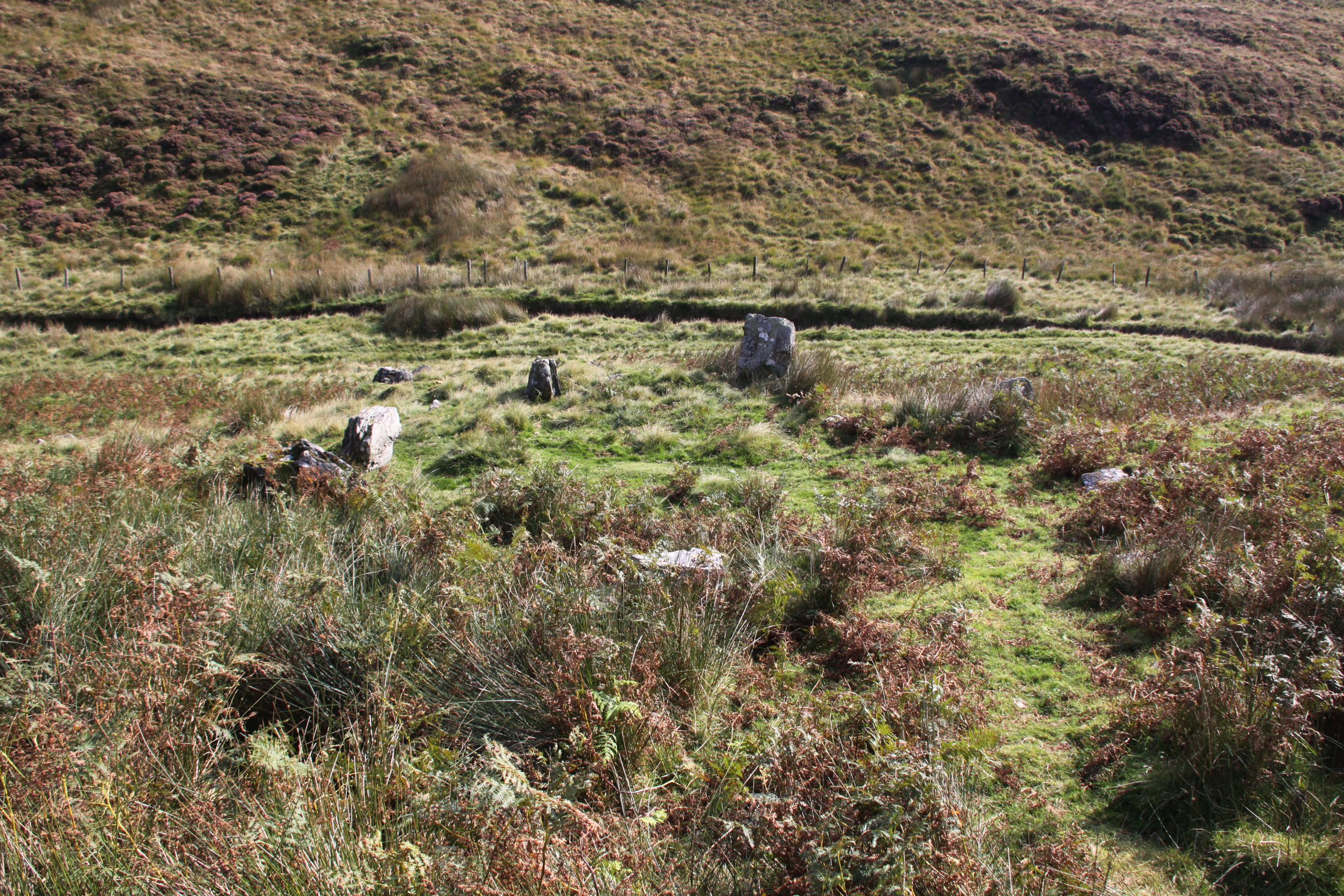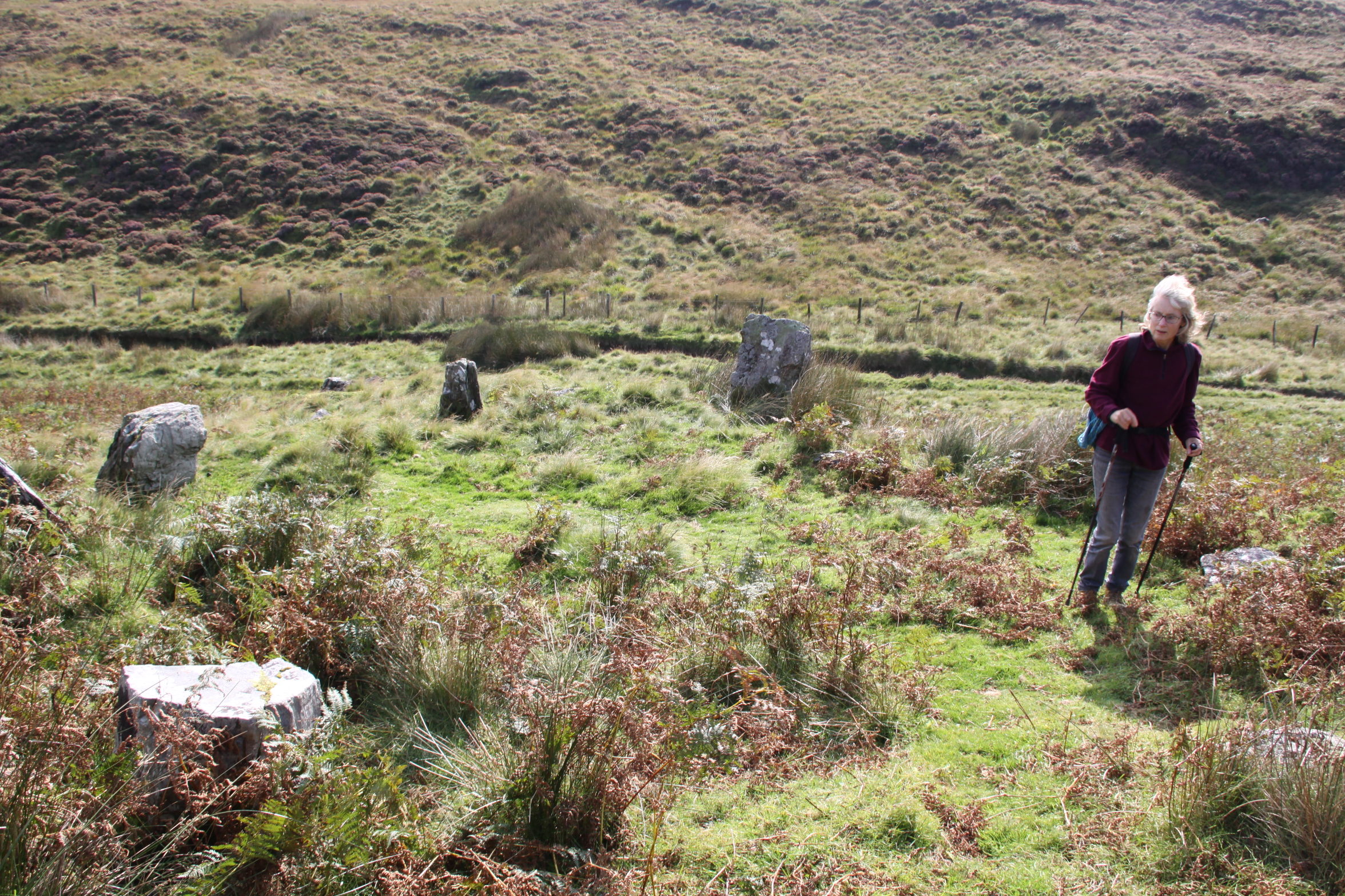 The stone circle is a little way along the path, up to the right, just a few seconds to reach it from the footpath.