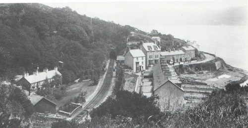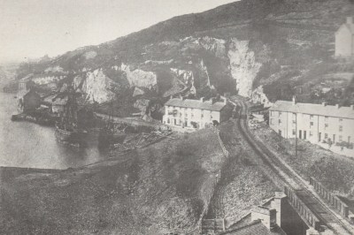 Penhelig shortly after the railway was laid, and before Penhelig Terrace was built, showing the railway tunnel and the shipyard just in front of the Penhelig Arms. Source: Hugh M. Lewis. Aberdyfi, A Glimpse of the Past.
