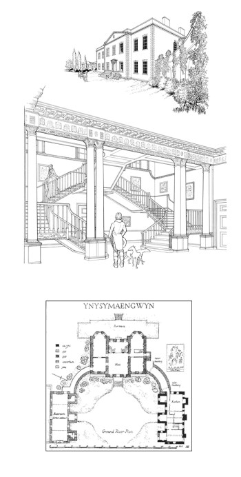 The Ynysymaengwyn Estate, showing Ann Owen’s 18th Century house and the servants quarters and kitchens in a separate building to the right. Source: Coflein.