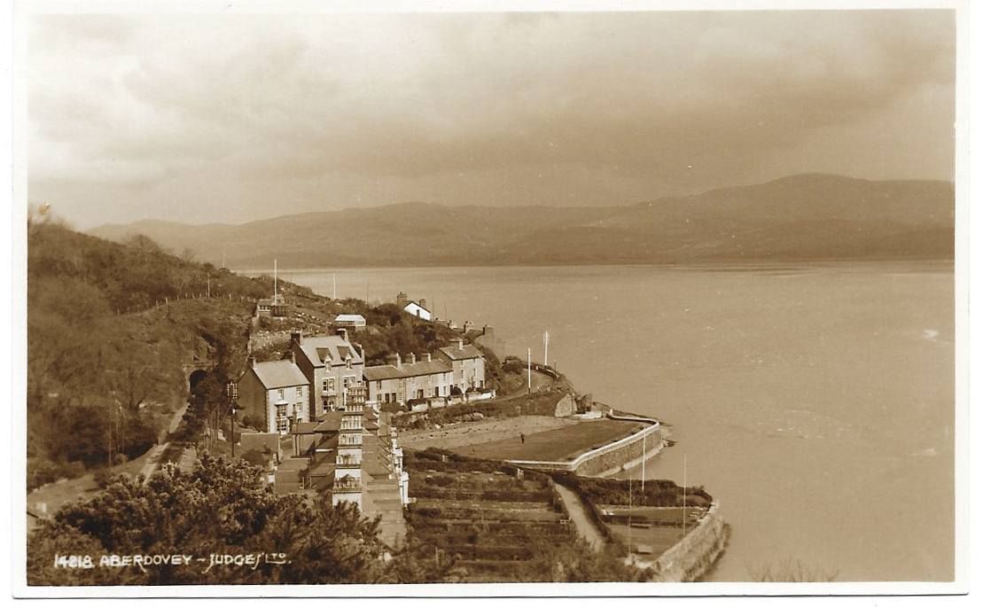 The row of houses behind the memorial park to the right of Penhelig Terrace on the main road through Aberdovey has not changed much since the above postcard.