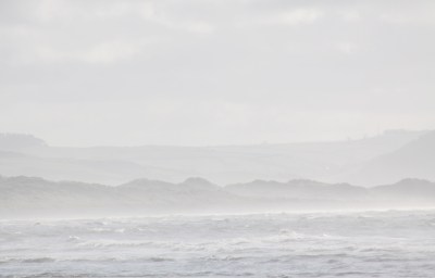 The views along the beach are splendid. After the recent heavy rain the Dysynni charges at high speed through a surprisingly narrow mouth into the sea, fascinating to watch, and you can see it and hear its roar on the video at the end of the post. This understated but impressive meeting of the Dysynni with the sea is marked as AberDysynni (mouth of the Dysynni) on the Ordnance Survey map. The sea itself makes a lovely sound on the rocky foreshore and gravel, drawing the gravel back as it retreats, and colliding with the rocks as it advances. Above the sound of the sea and wind are the musical voices of sea birds. As you walk along it, the beach curves around a long corner promising more of the same untroubled vistas over an empty beach, rolling white horses and, in the distance, the Llyn peninsula. Behind the beach, looking east, are views of the major summits of Tonfanau and Foel Llanfendigaid, as well as the smooth green slopes of the hills between them.