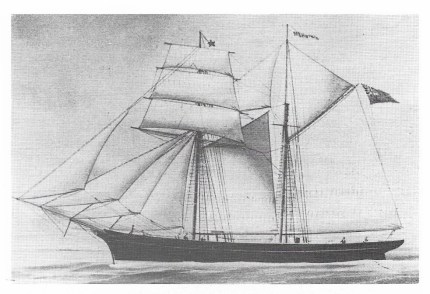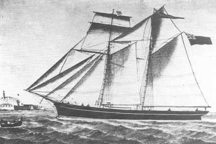 The schooner Mervinia. Source: Lloyd 1996, volume 2, with her copper sheathing showing clearly just above the waterline.
