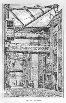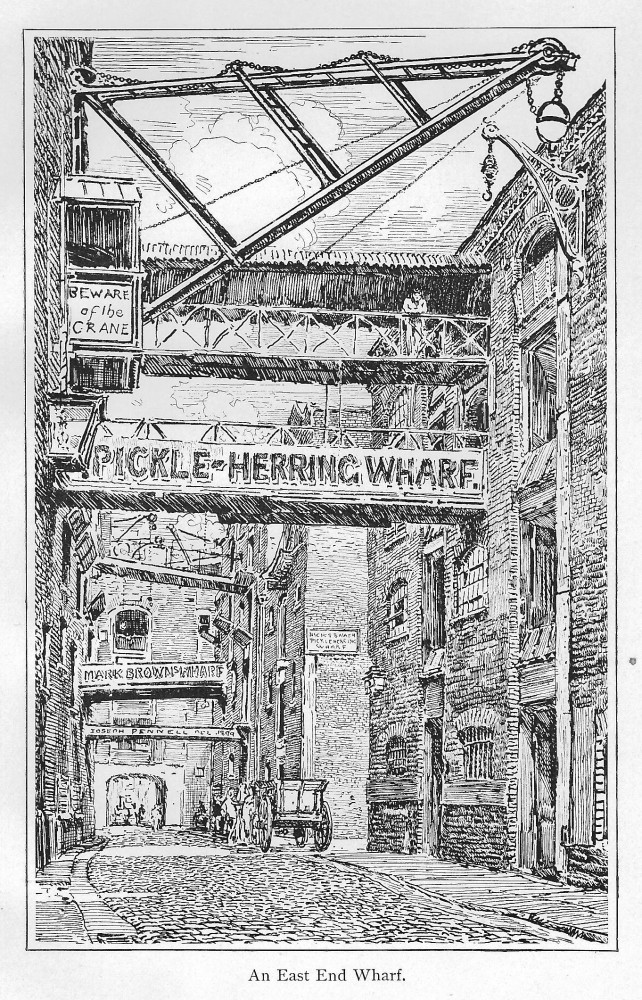Pickle Herring Wharf, Bermondsey, in 1899 by Joseph Pennell. Source: Frontispiece.