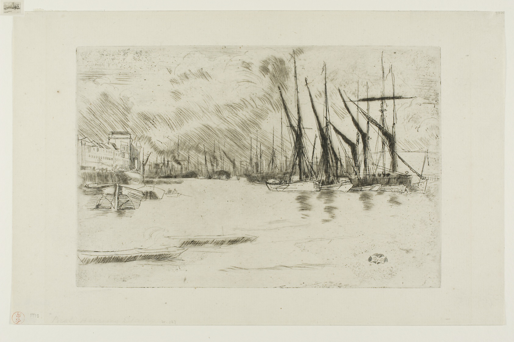 Pickle Herring Wharf from the river, by J.A.M.Whistler. Source: Art Institute of Chicago