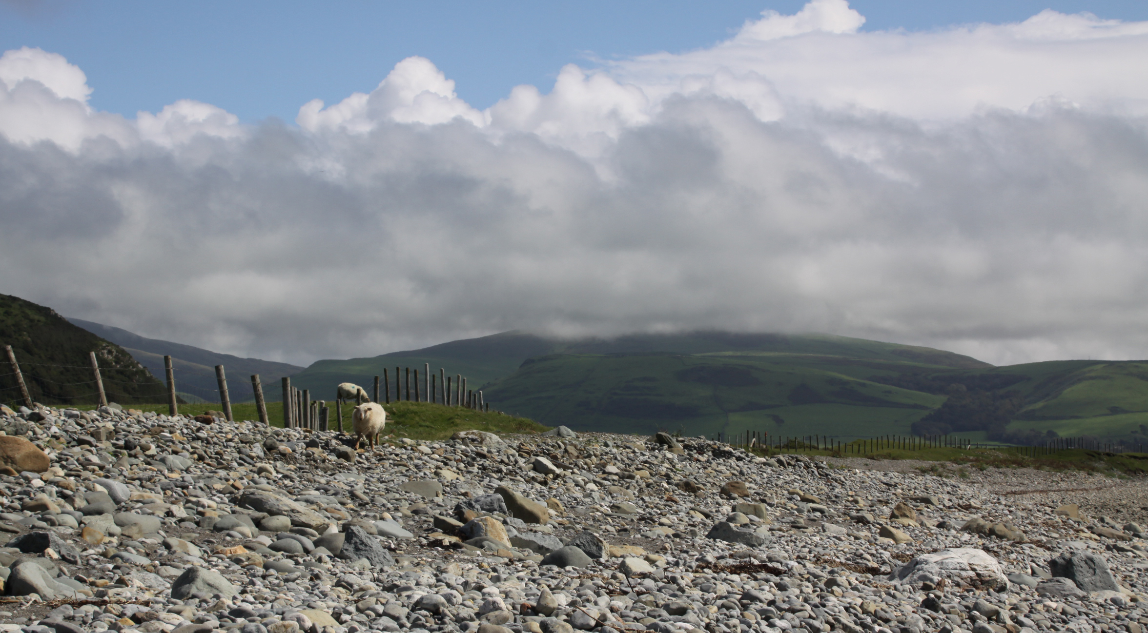 Some of the few surviving remains of Tonfanau Army Camp today, behind Tonfanau station, complete with grazing sheep, the sea just out of sight in the background